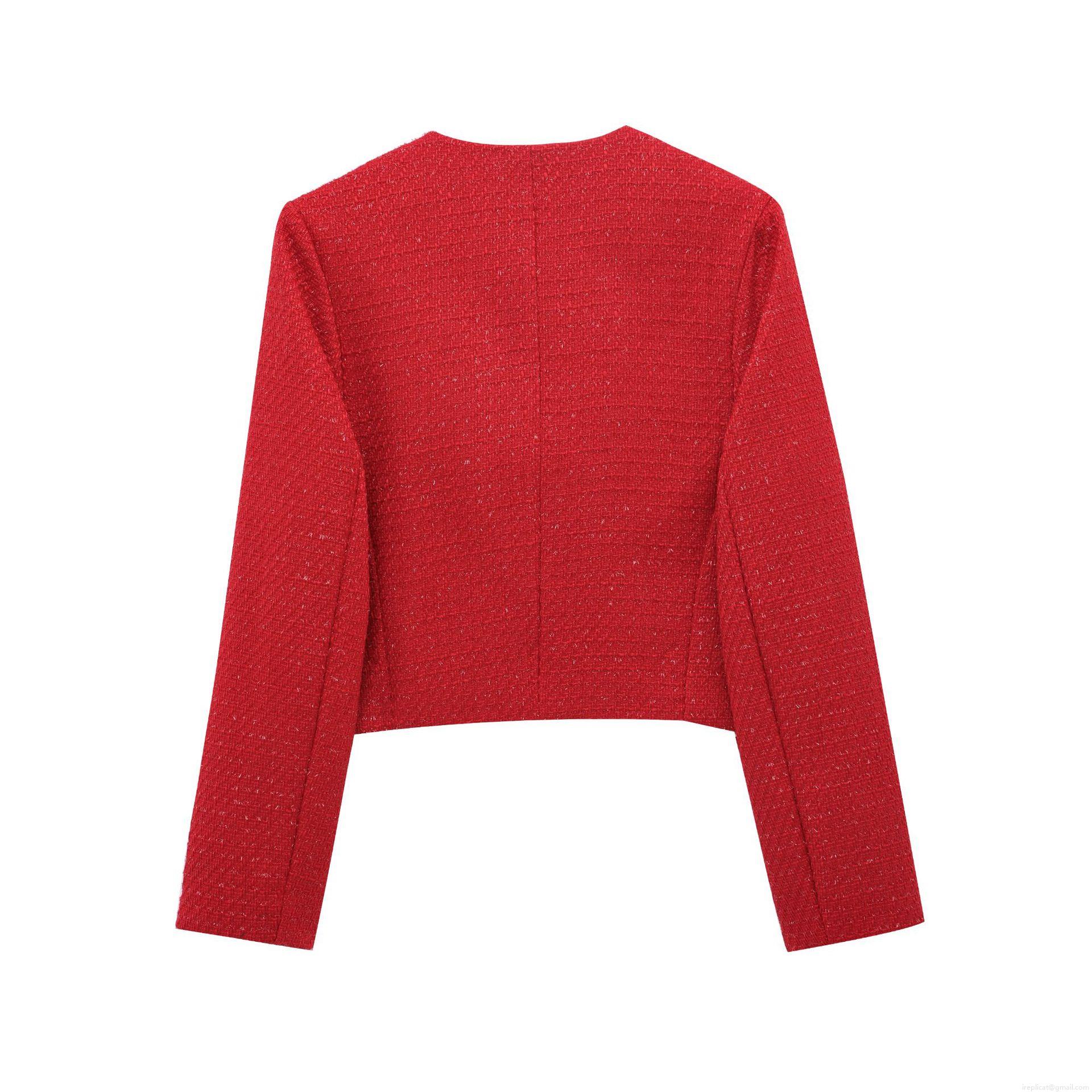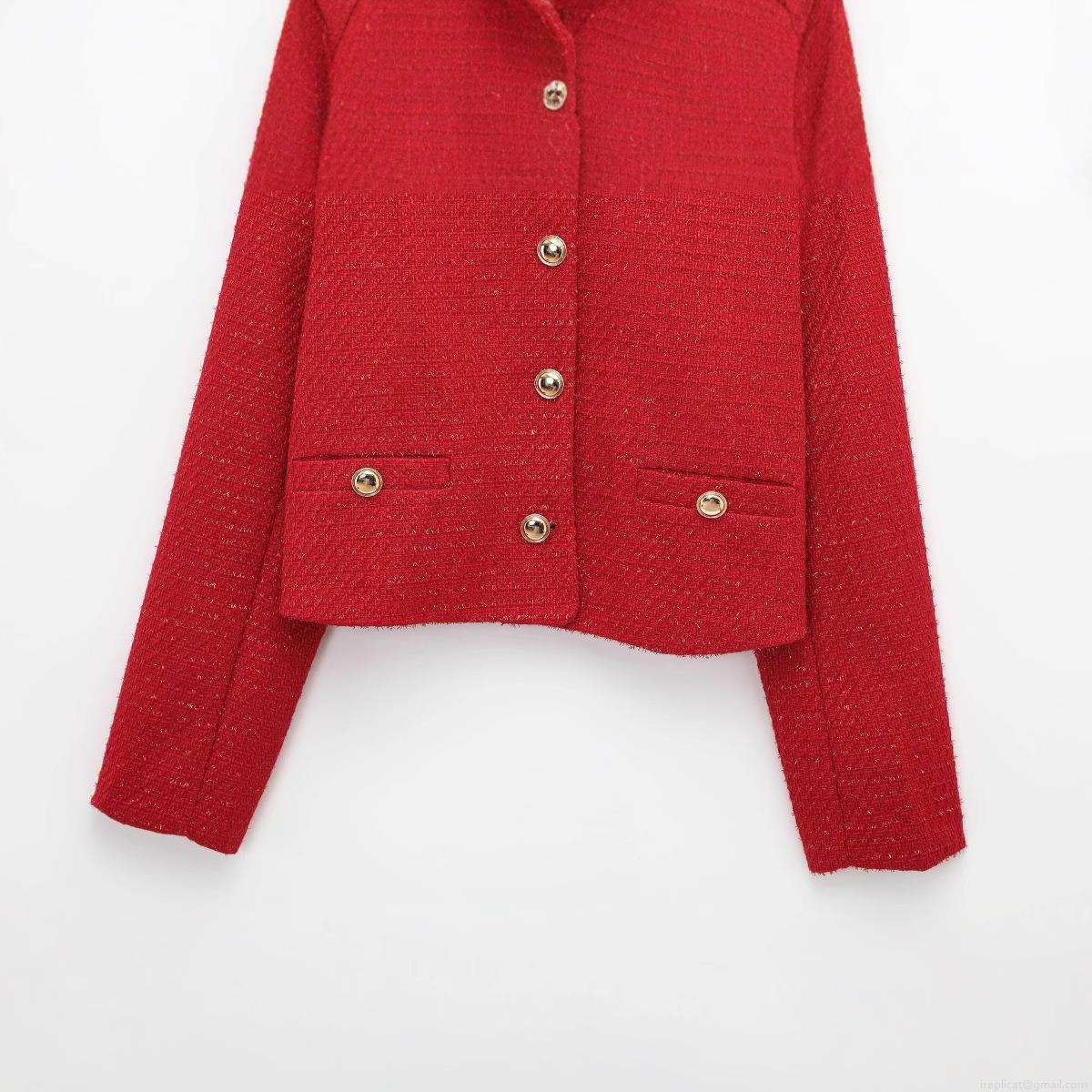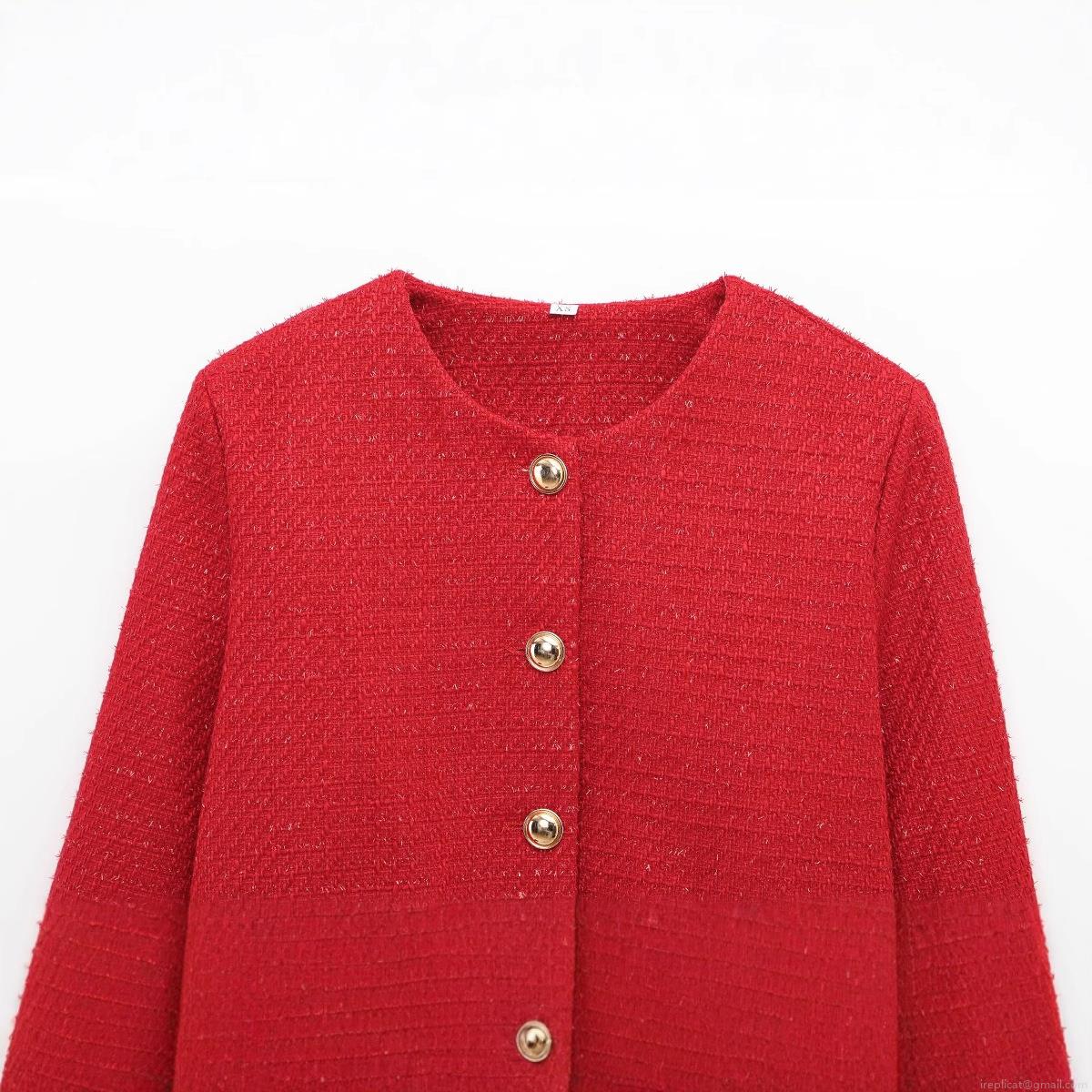 • Women's Elegant Red Tweed Jacket Vintage Round Neck Single Breasted Coat With Gold Metal Buttons For Daily Party Office Outerwear