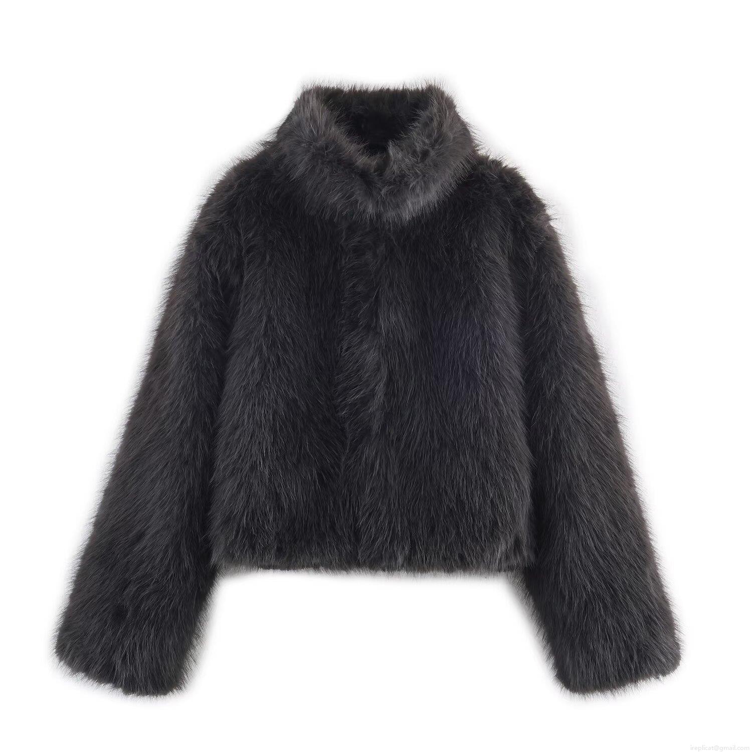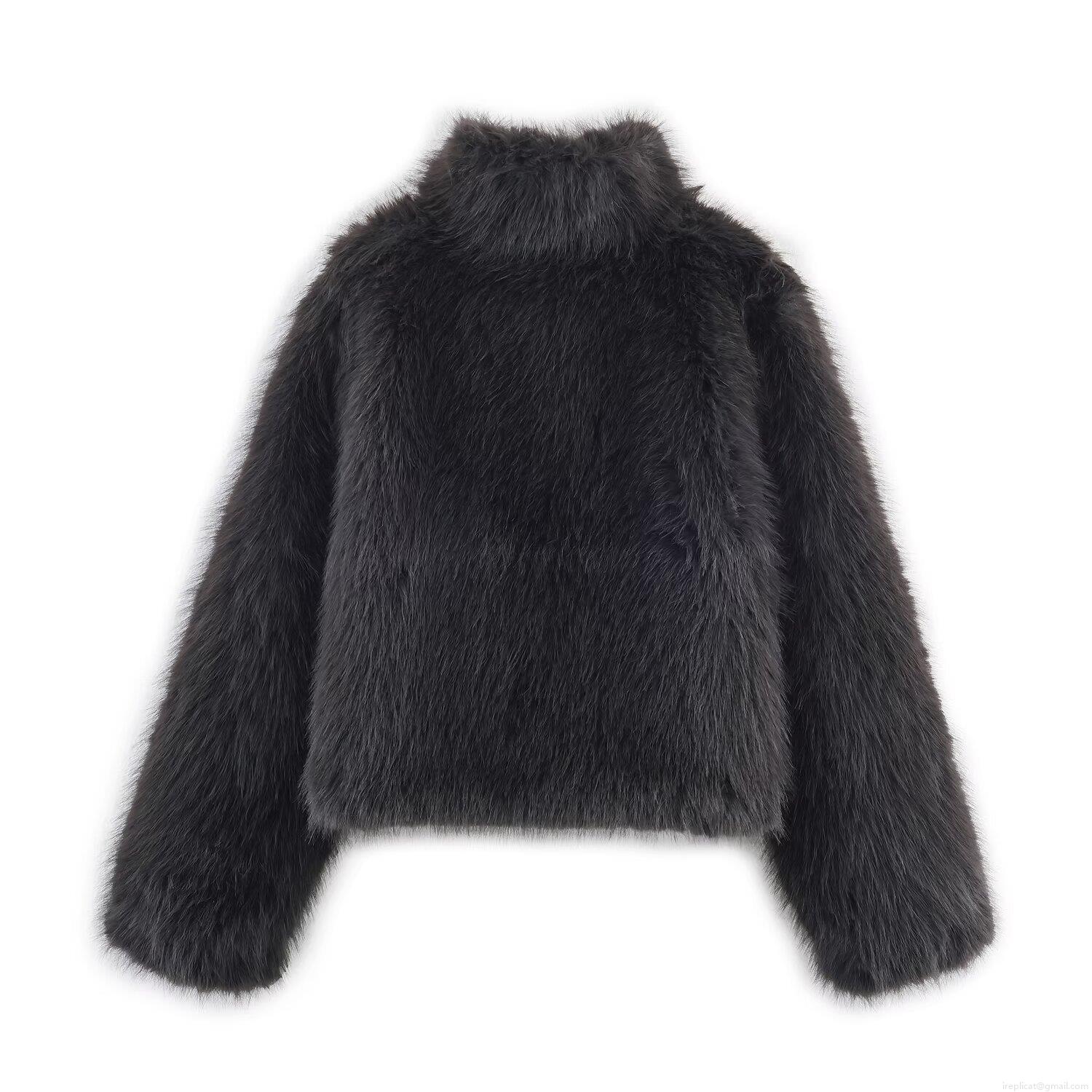 • Women's Elegant Short Faux Fur Coat Stand Collar Warm Winter Outerwear Solid Color Long Sleeve Jacket With Snap Buttons For Ladies Party Clubwear