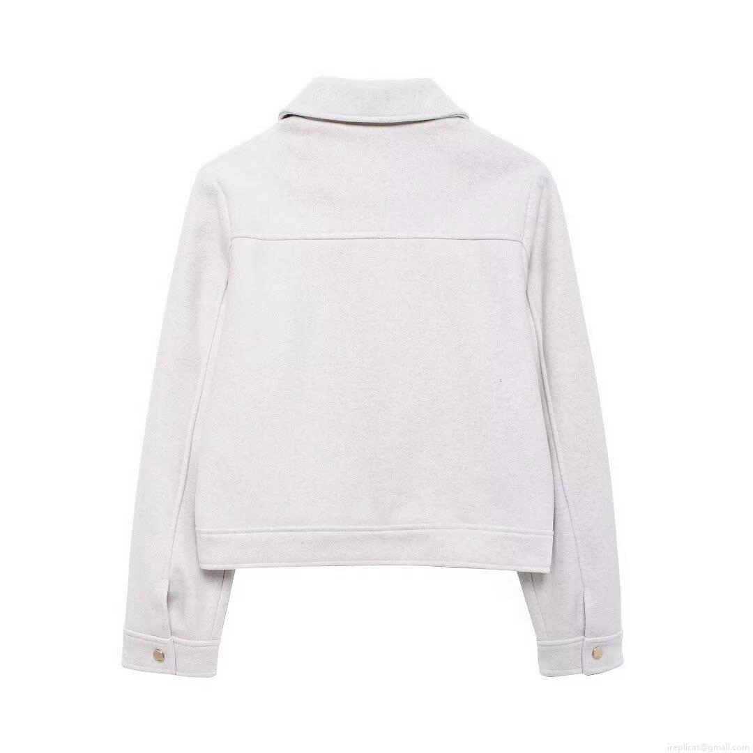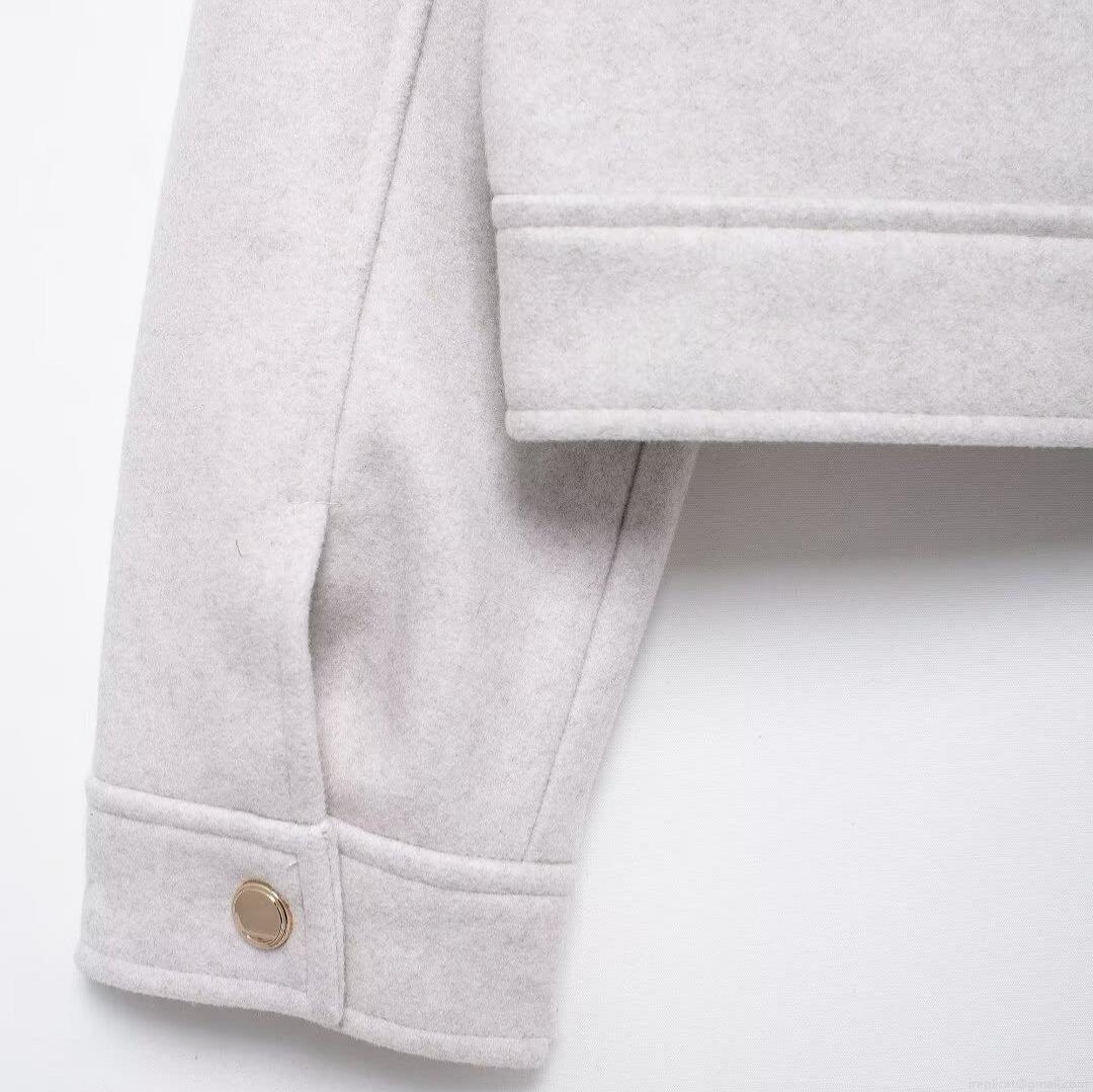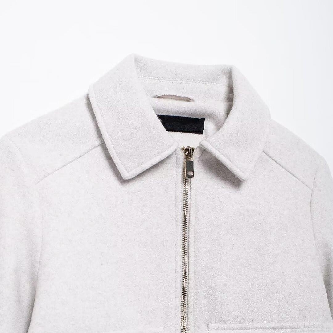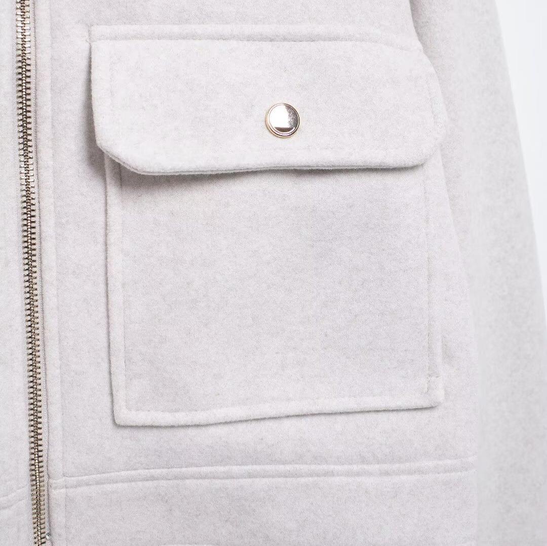 • Women's Elegant Short Jacket Woolen Feel Blended Fabric Lapel Zipper Front Cargo Pockets Autumn Commuting Outerwear For Lady