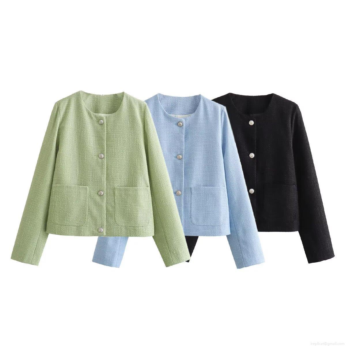 • Women's Elegant Short Tweed Jacket Round Neck Long Sleeve Coat With Metal Buttons Fashion Sweet Style Outerwear For Lady