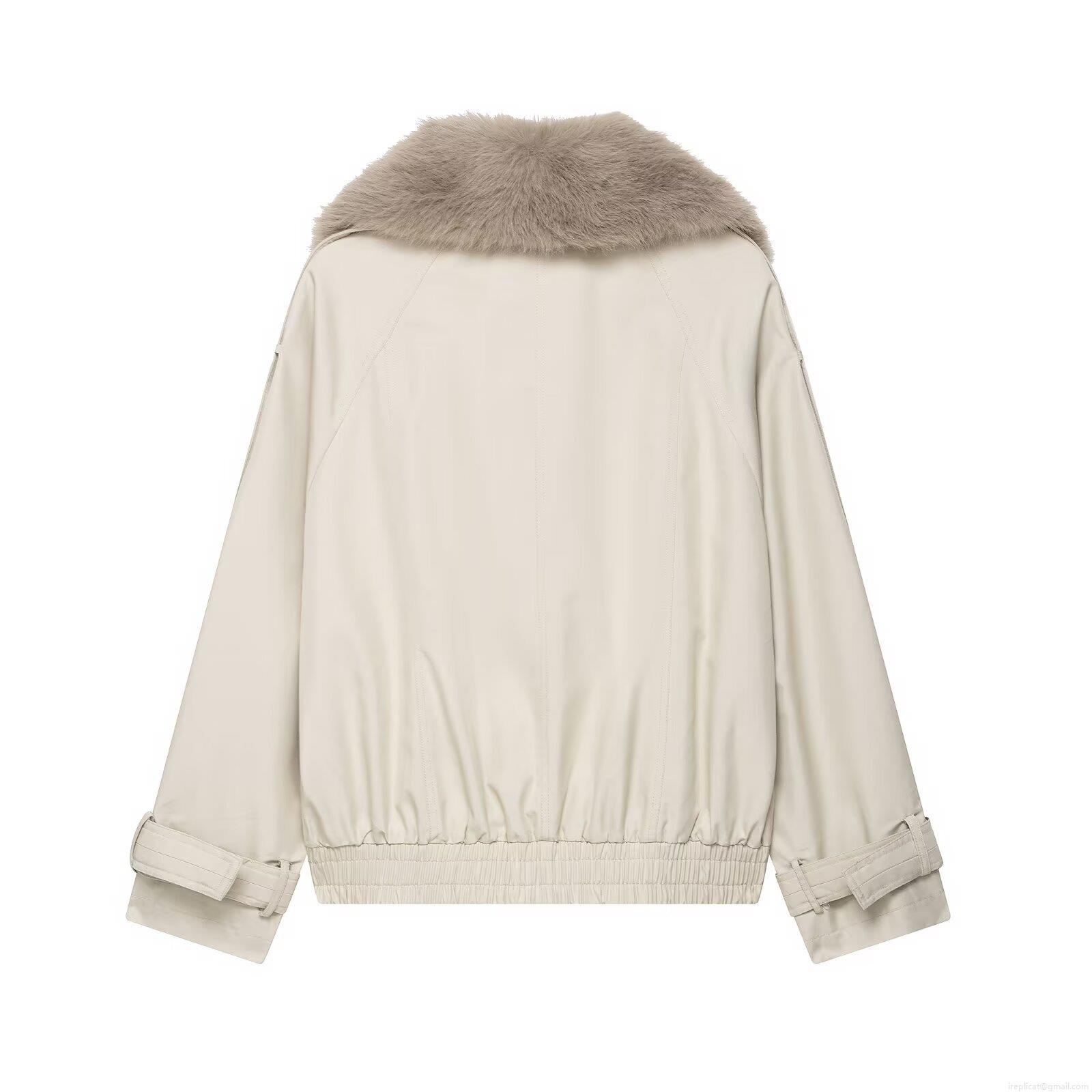 • Women's Elegant Short Waterproof Trench Coat With Faux Fur Collar Double Breasted Suede Jacket Solid Color Casual Windbreaker For Lady