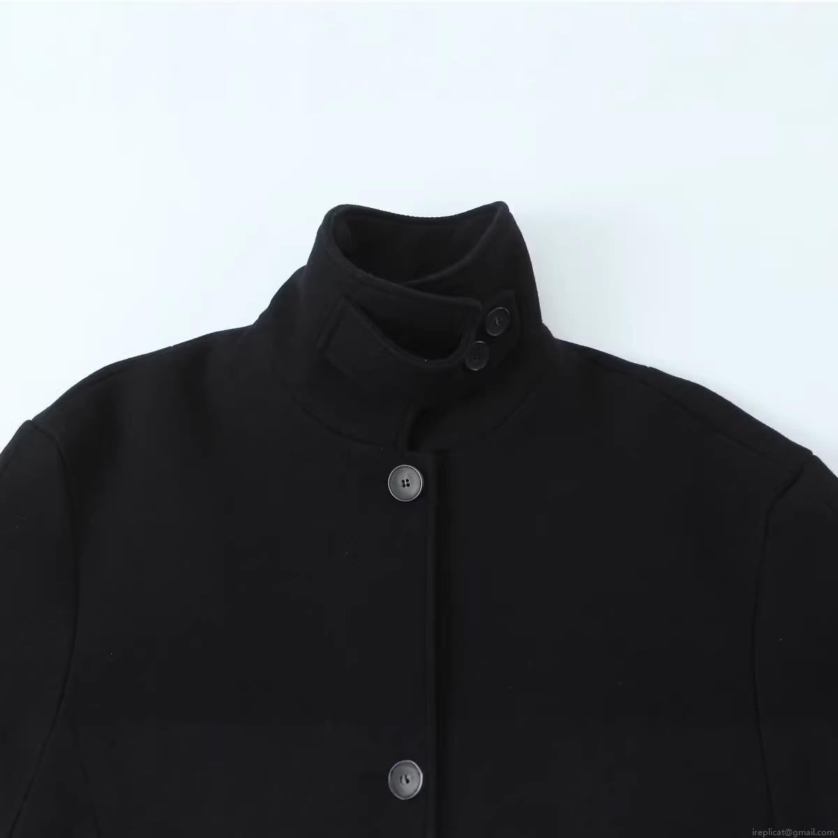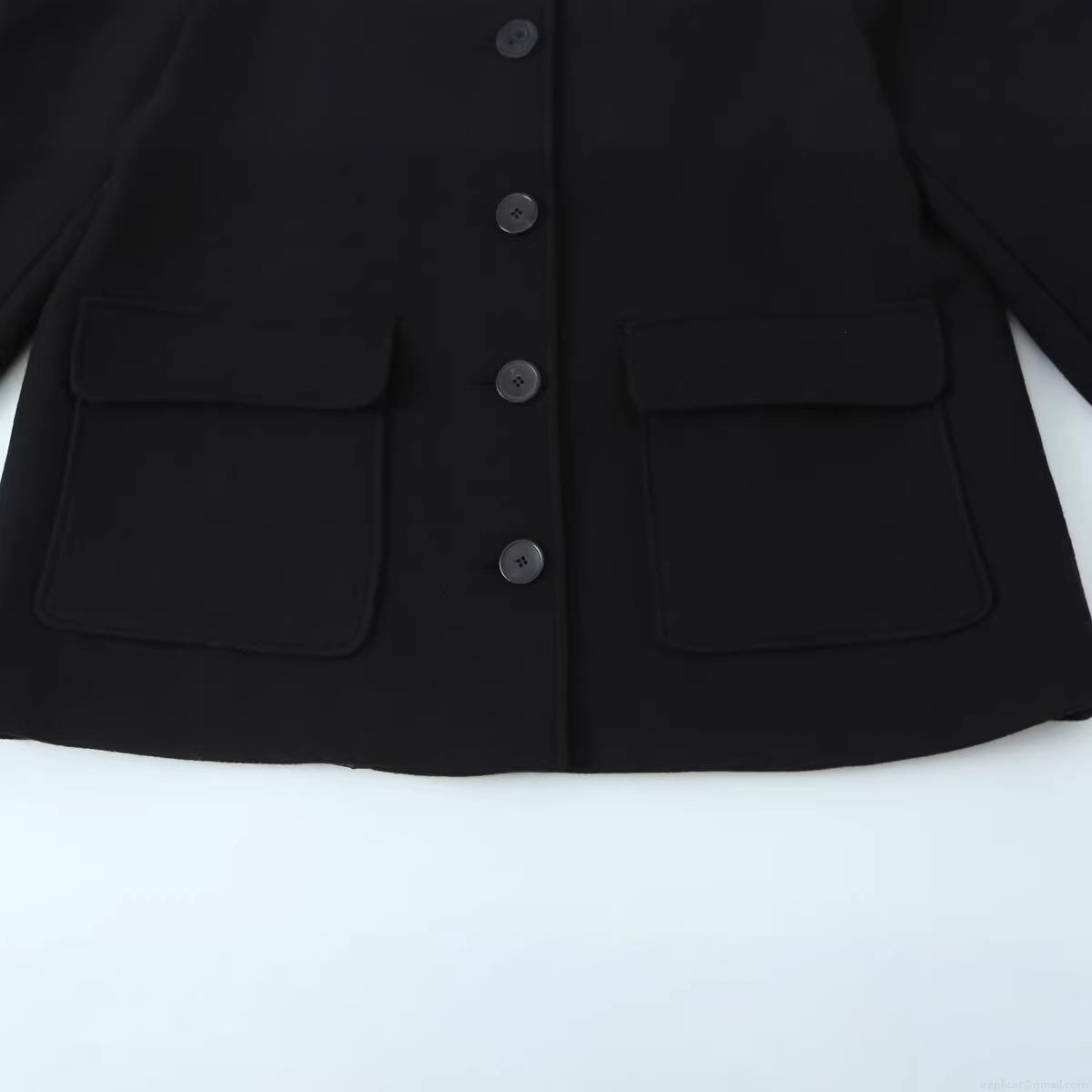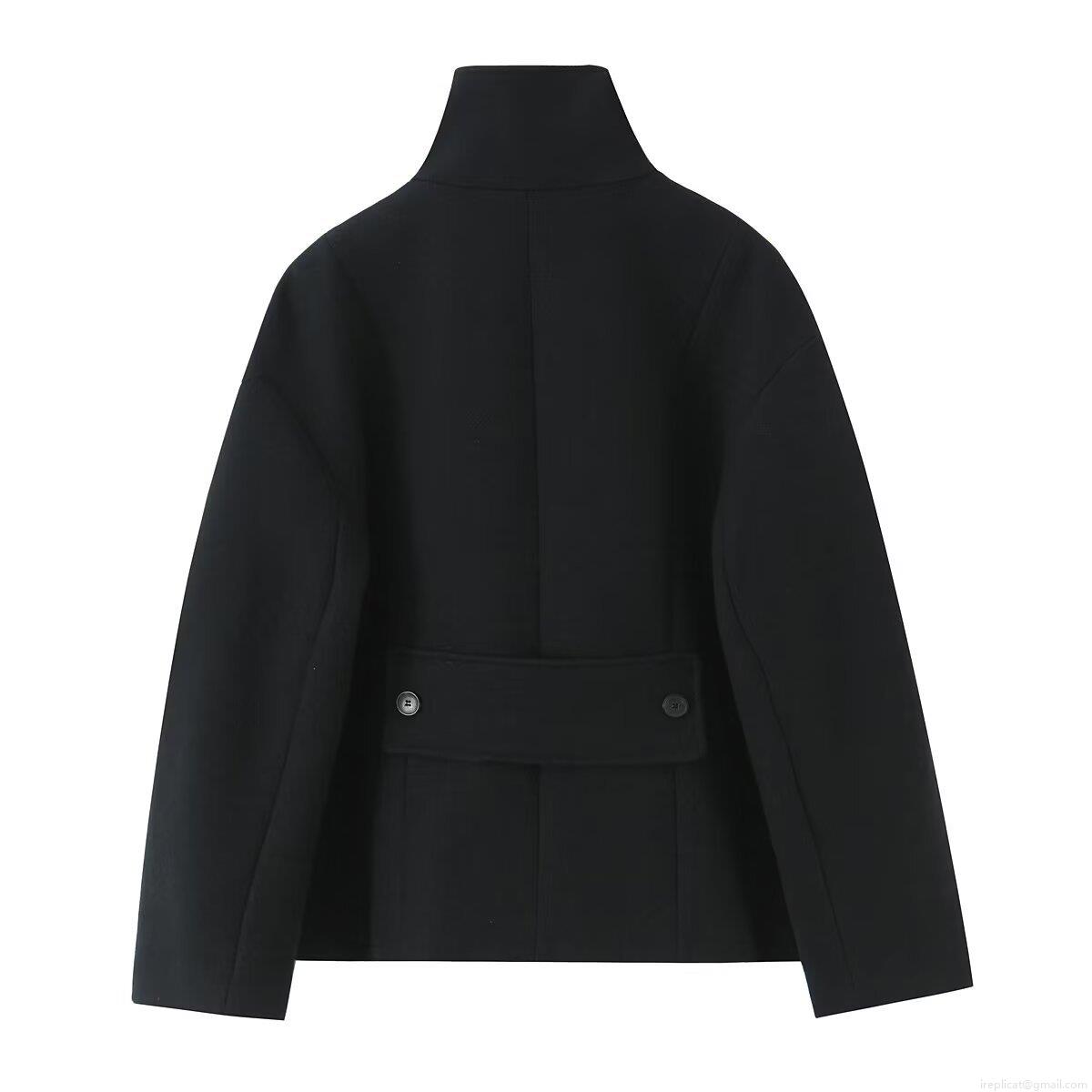 Women's Elegant Short Woolen Blend Jacket Stand Collar Single Breasted Coat With Big Pockets Casual Solid Black Winter Outerwear