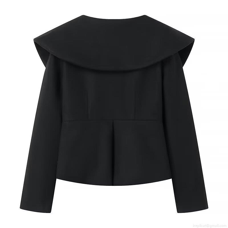 • Women's Elegant Solid Black Short Jacket Big Lapel Peplum Hem Woolen Style Slim Fit Zipper Coat Long Sleeve Outerwear For Party Daily Office