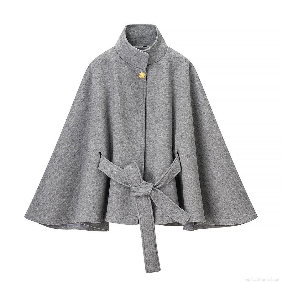 • Women's Elegant Stand Collar Woolen Poncho Coat With Flare Sleeves Lace-up Waist Solid Color Short Cape Jacket Streetwear Autumn Winter Warm Overcoat For Women