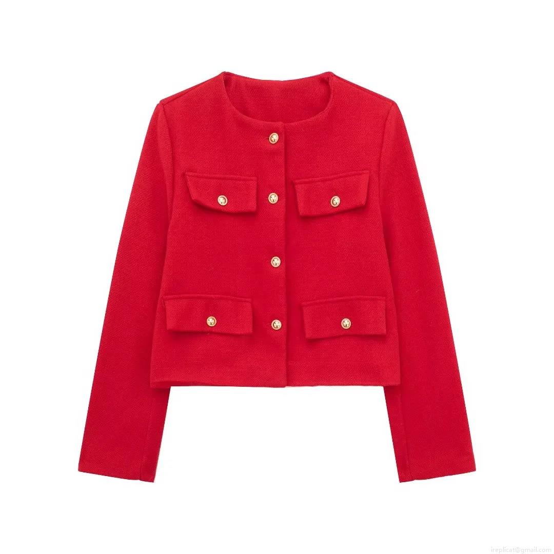 • Women's Elegant Tweed Jacket Short Cropped Coat Round Neck Gold Buttons Four Pockets Casual Outwear For Autumn Winter Fashion