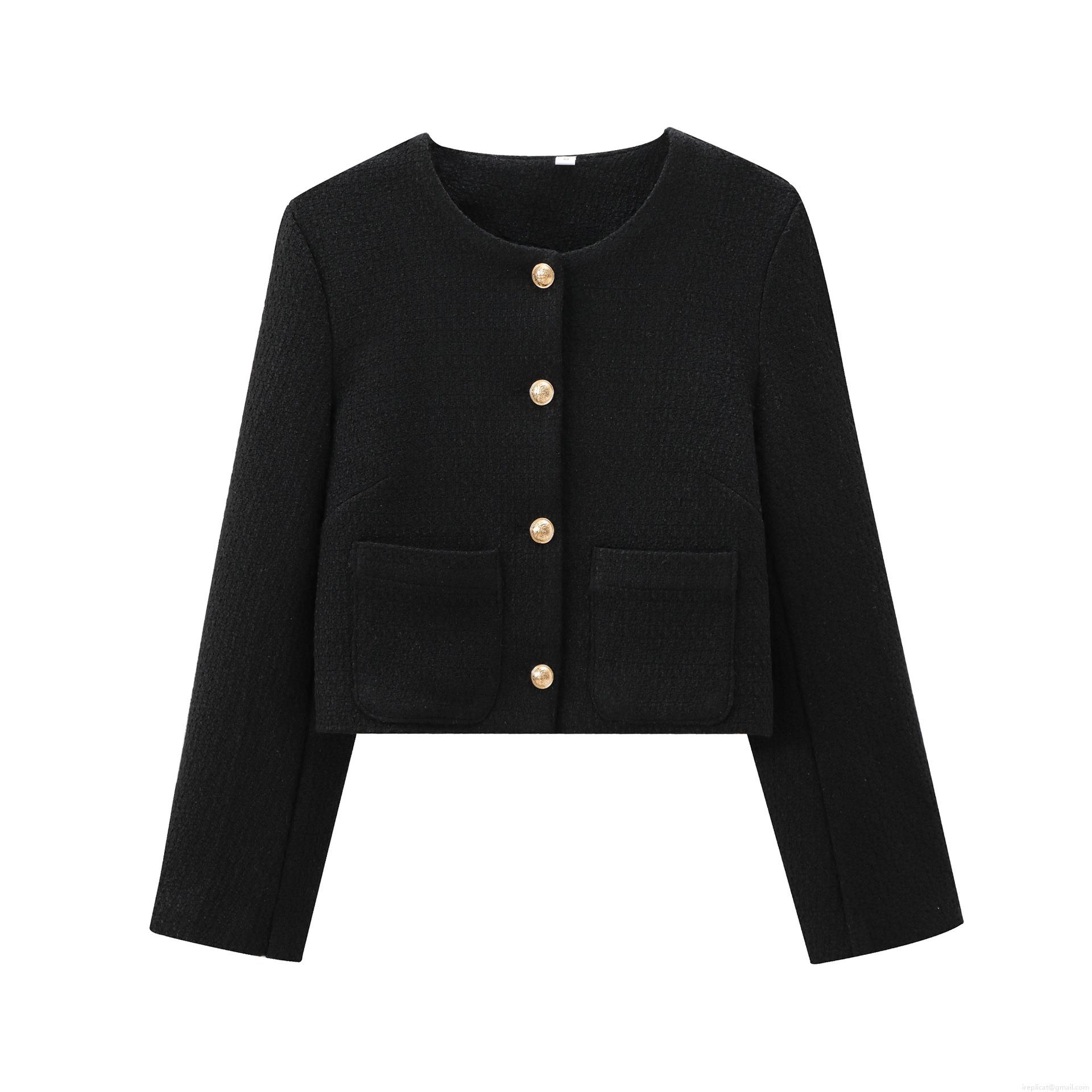 • Women's Elegant Tweed Jacket Small Fragrance Style Short Coat With Metal Buttons Long Sleeve Outerwear For Party Dating Casual Ladies Jacket