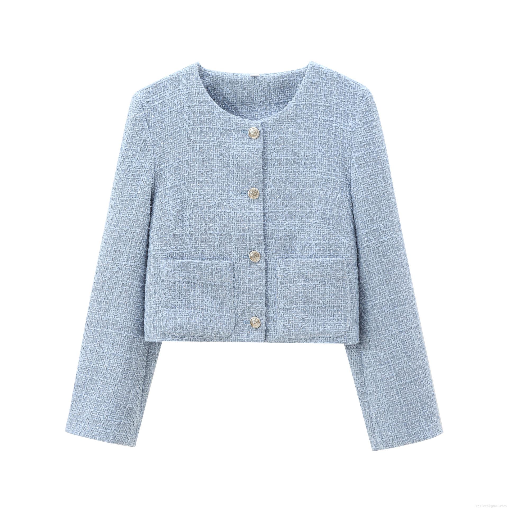 Women's Elegant Tweed Jacket Small Fragrance Style Short Coat With Metal Buttons Long Sleeve Outerwear For Party Dating Casual Ladies Jacket