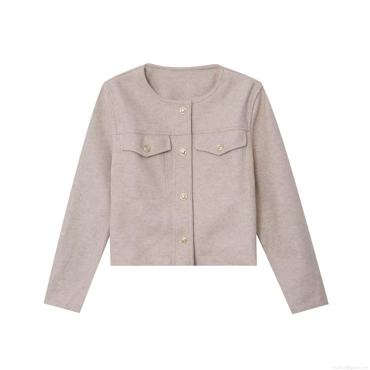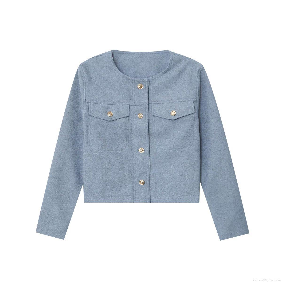 Solid Color, Collage, Pocket Decoration, Gold Buttons, Wool Texture