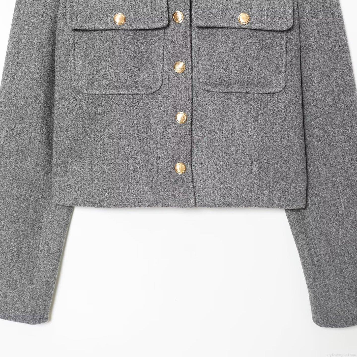 • Women's Elegant Wool Blend Short Jacket Elegant Stand Collar Solid Color Coat With Gold Buttons Commute Casual Outerwear For Women Lady