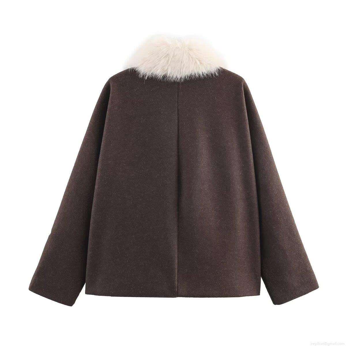 • Women's Elegant Woolen Blend Jacket With Faux Fur Collar Solid Color Single Breasted Loose Fit Short Coat For Winter Outdoor Daily Lady Fashion Outerwear