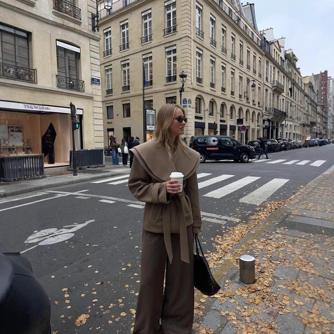 • Women's Elegant Woolen Overcoat Large Lapel Tie Waist Long Trench Coat Casual Streetwear Autumn Winter Solid Color Outwear For Women