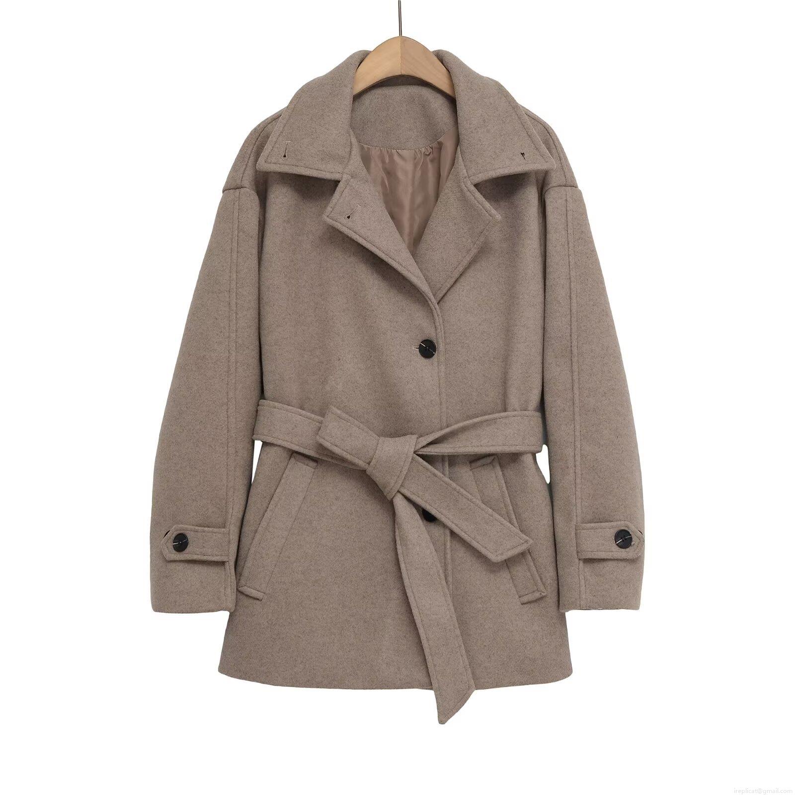 • Women's Elegant Woolen Style Coat Lapel Single Breasted Overcoat With Waist Belt Autumn Winter Warm Long Sleeve Jackets Outerwear For Office Lady Casual Fashion