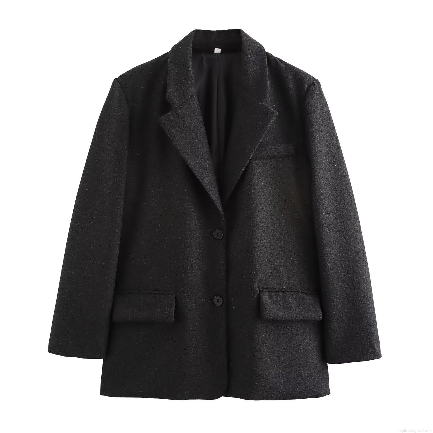 • Women's Elegant Woolen Texture Blazer Jacket With Shoulder Pads Casual Long Sleeve Solid Color Buttons Outerwear For Office Streetwear