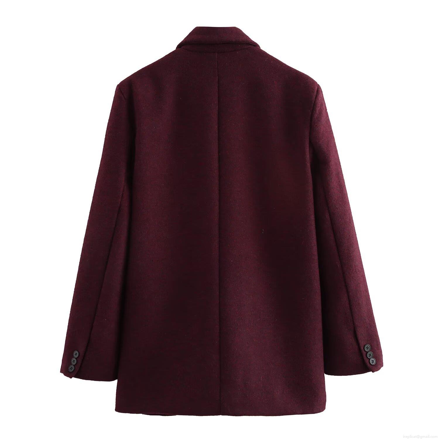 Women's Elegant Woolen Texture Blazer Jacket With Shoulder Pads Casual Long Sleeve Solid Color Buttons Outerwear For Office Streetwear