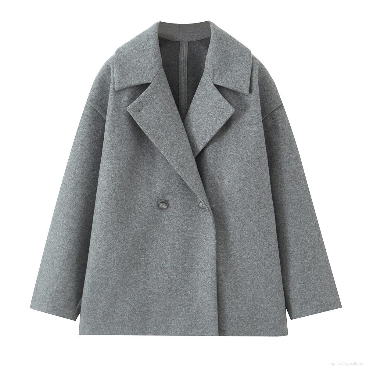 • Women's Elegant Woolen Texture Short Coat Double Breasted Turn Down Collar Loose Casual Jacket For Fall Winter Commuter Outerwear
