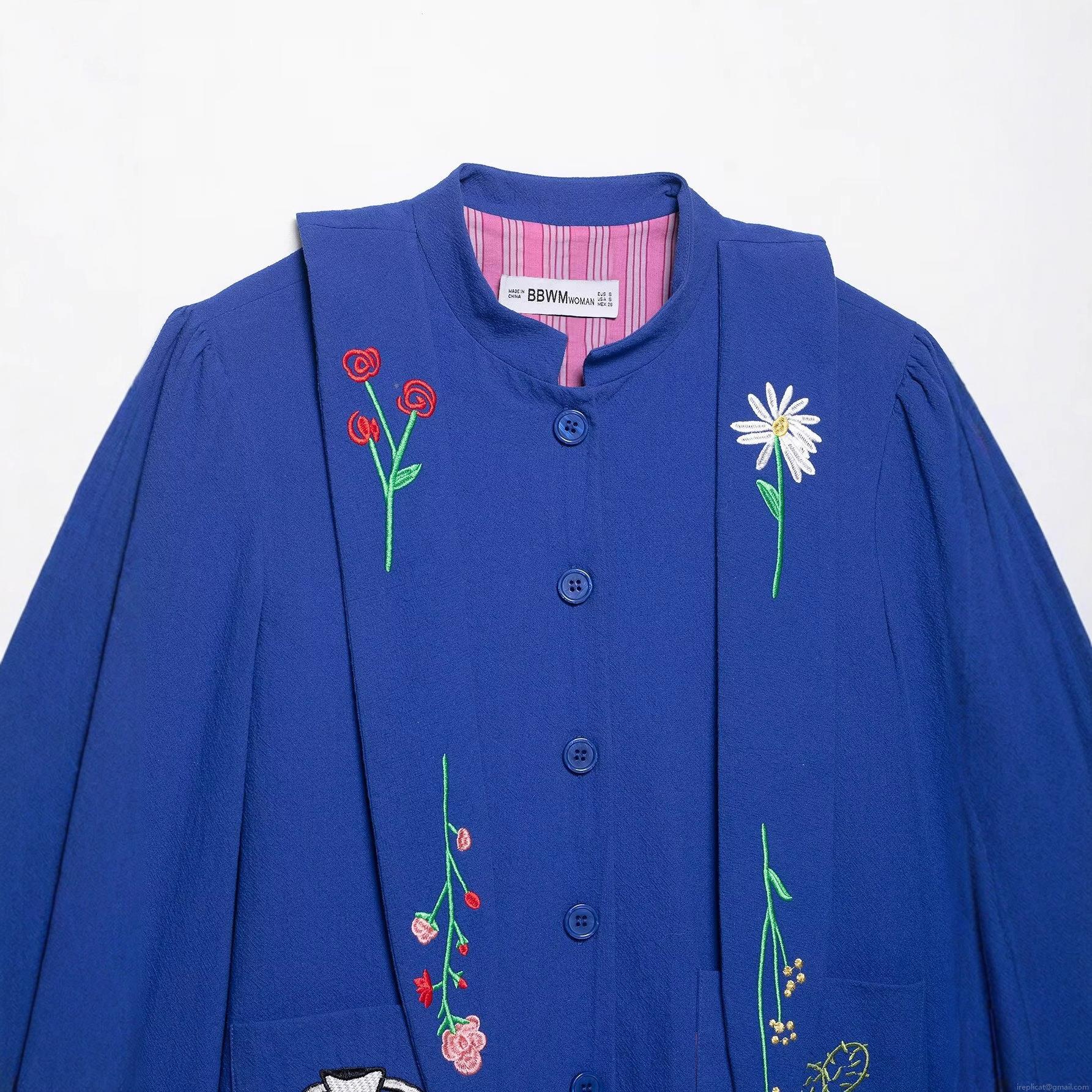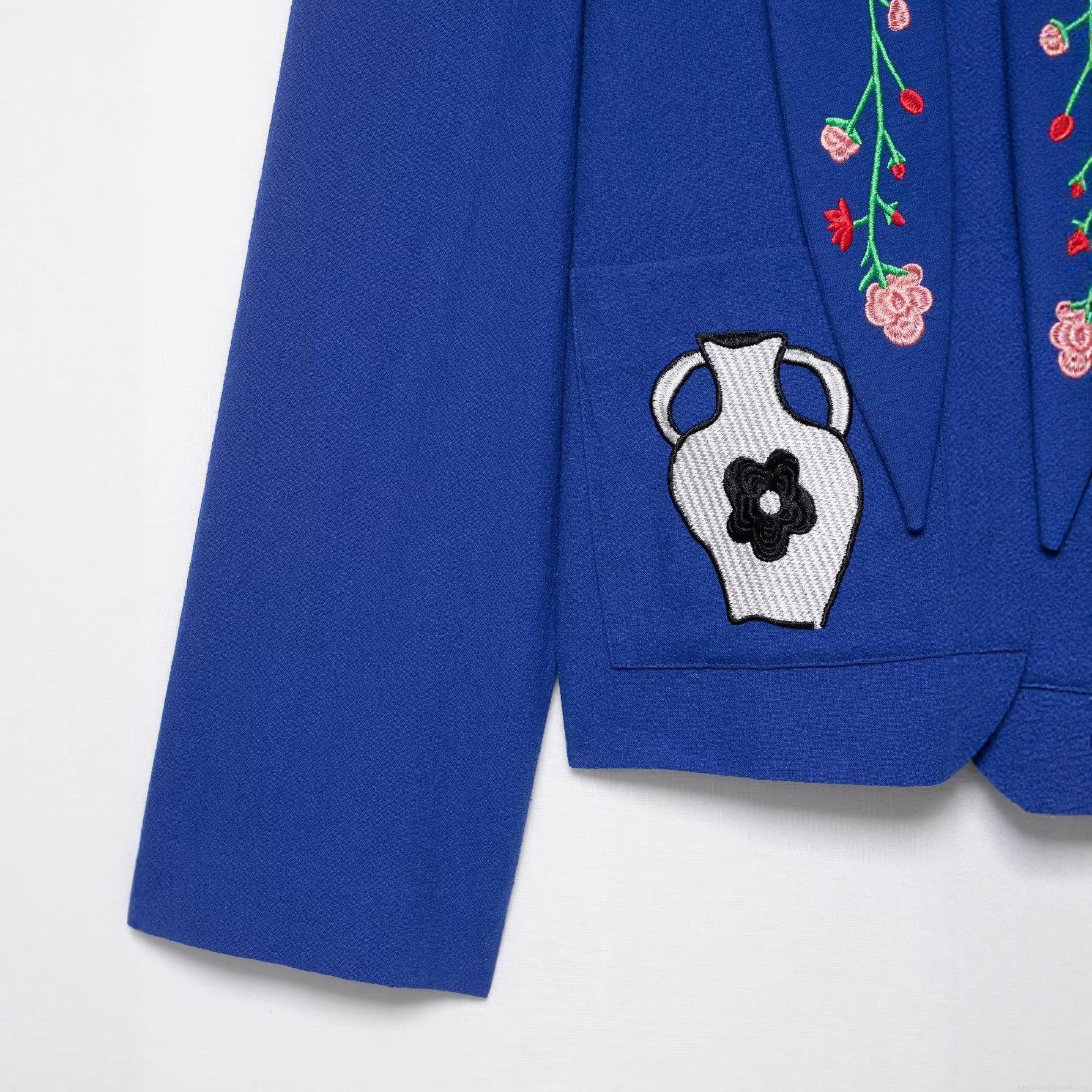 • Women's Embroidered Jacket 100% Polyester Long Sleeve Button Down Turn-down Collar Short Casual Coat Blue Floral Cactus Strawberry Embroidery For Daily Autumn Outwear