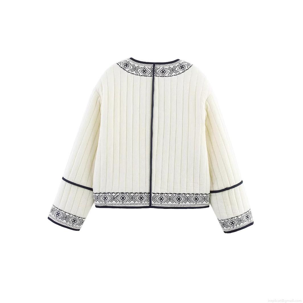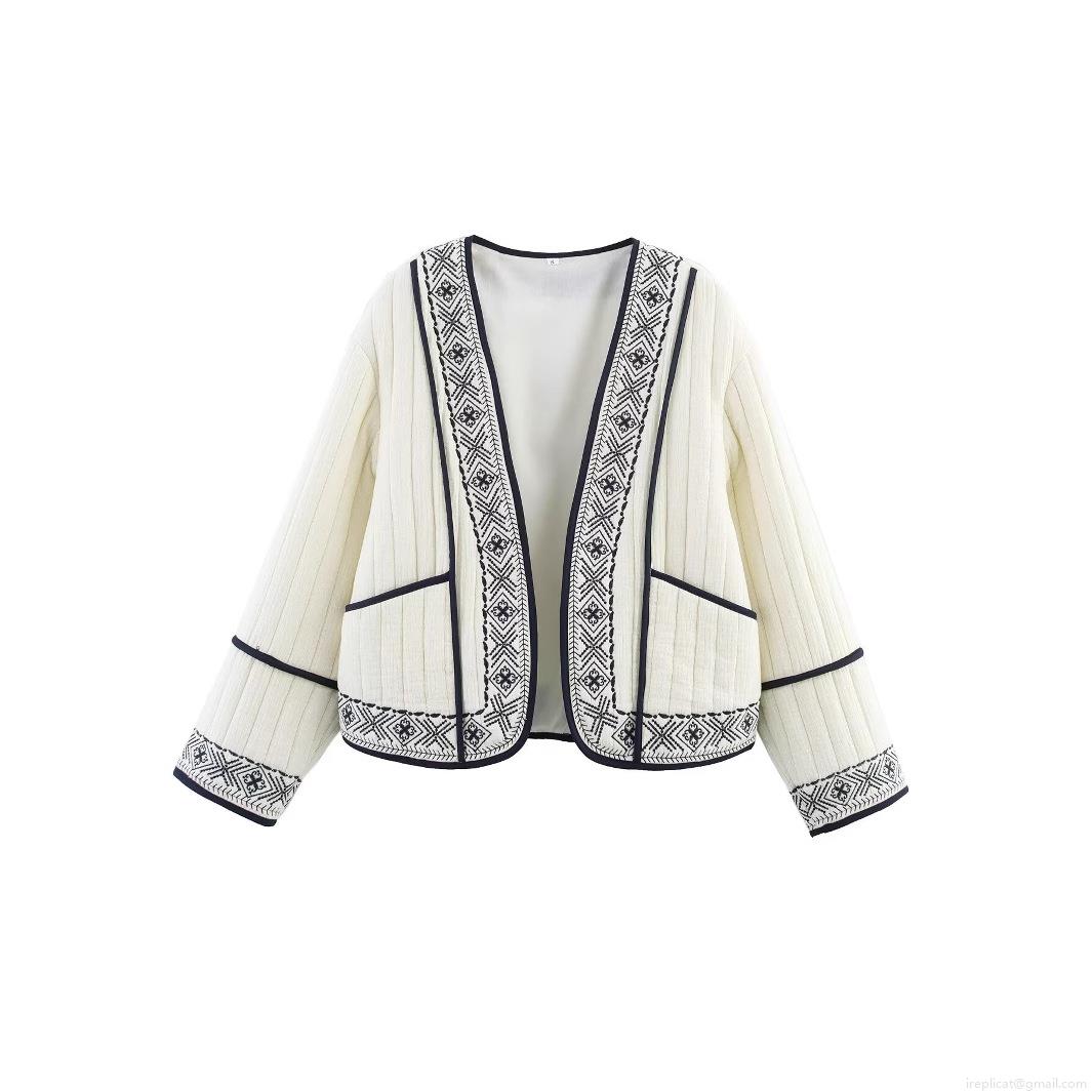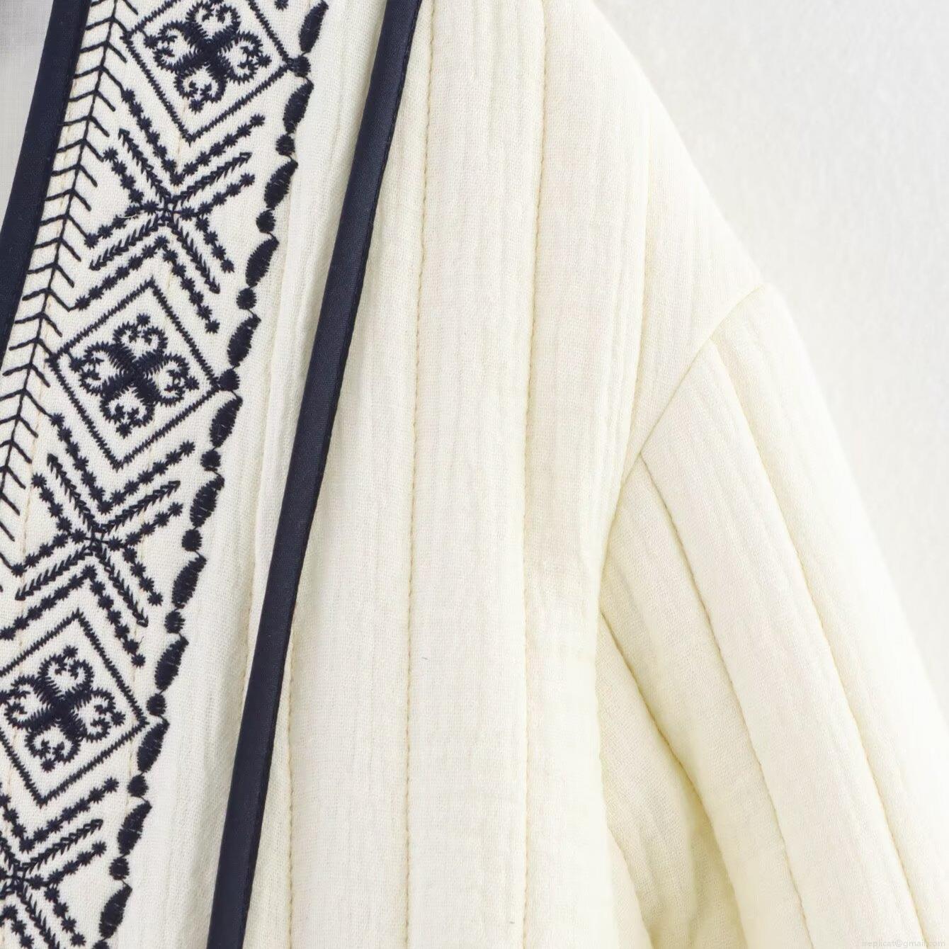 • Women's Ethnic Embroidery Quilted Jacket Bohemian Geometric Pattern Open Front Cotton Short Coat Casual Loose Outerwear For Women