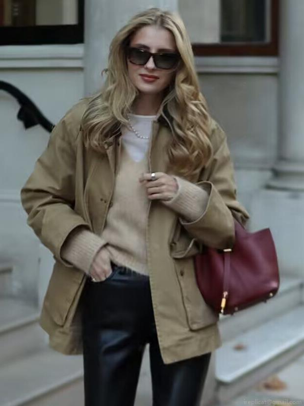Women's European Fashion Workwear Jacket Coat With Corduroy Contrast Collar Long Sleeve Zipper Polyester Canvas Style Outerwear Casual Street Streetwear Top