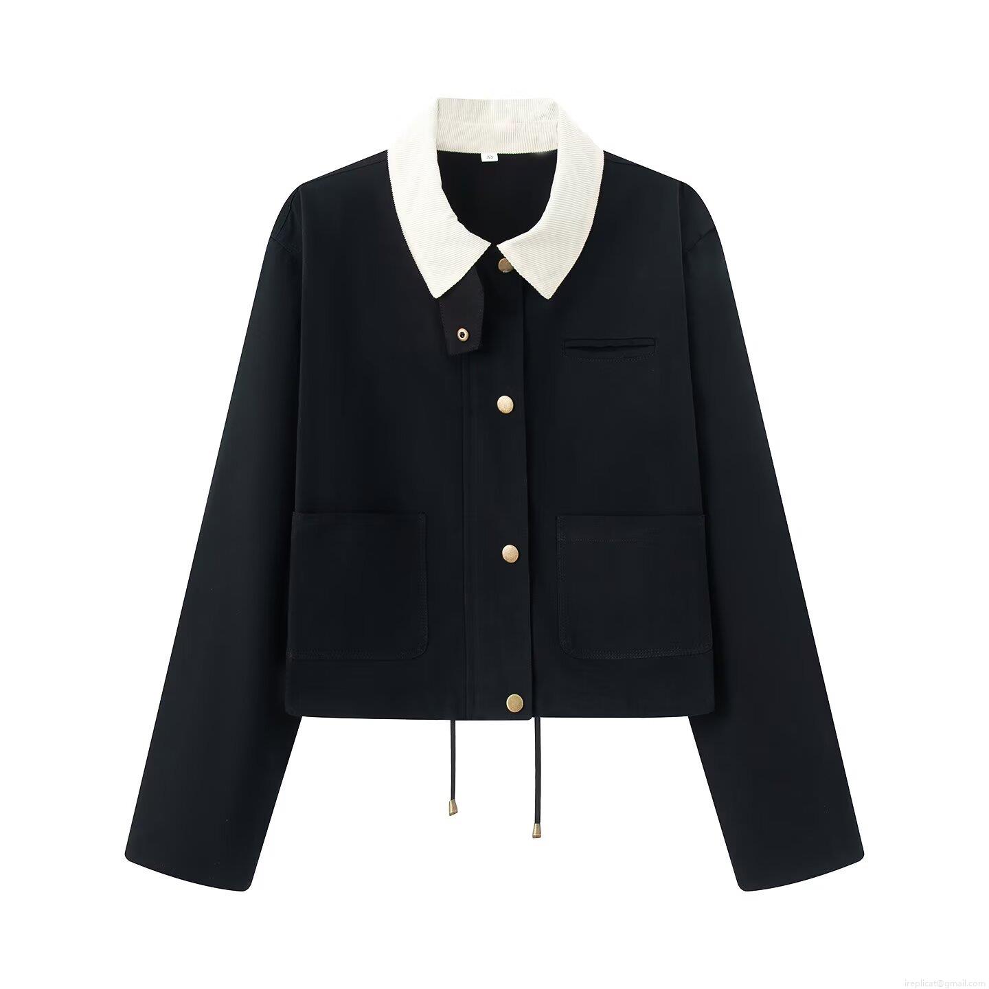 • Women's European Style Color-block Corduroy Lapel Jacket Long Sleeve Patchwork Loose Outerwear With Metal Buttons And Drawstring Hem Casual Street Style Coat For Autumn