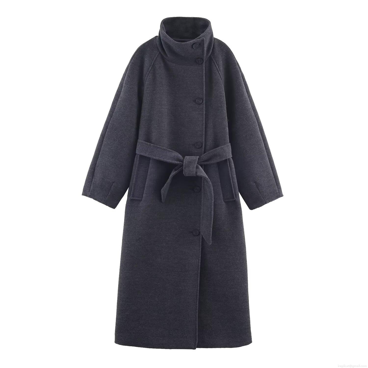 • Women's European Style Long Woolen Coat With Belt Stand Collar Single Breasted Thick Warm Polyester Trench Jacket For Winter Fall Streetwear Lady