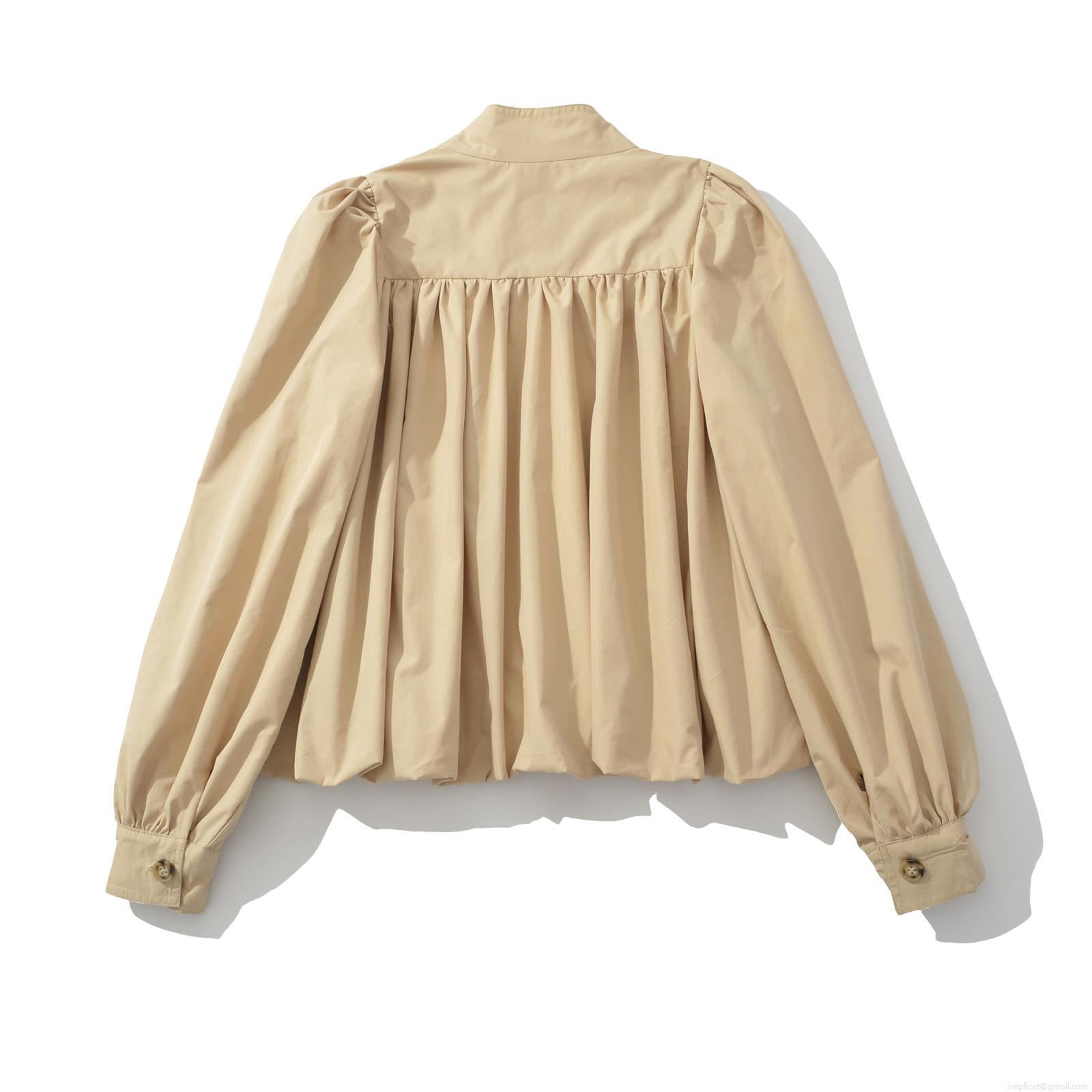 • Women's European Style Pleated Stand Collar Jacket Lantern Sleeve Solid Color Cotton Nylon Blend Autumn Loose Casual Coat For Daily Streetwear Fashion
