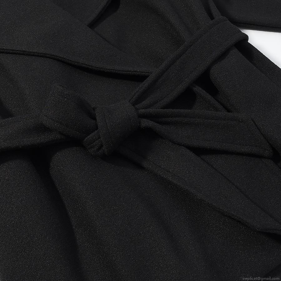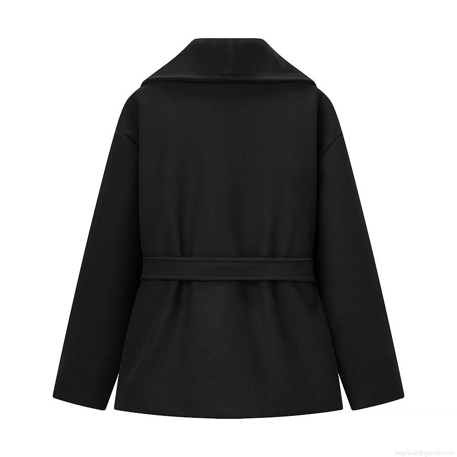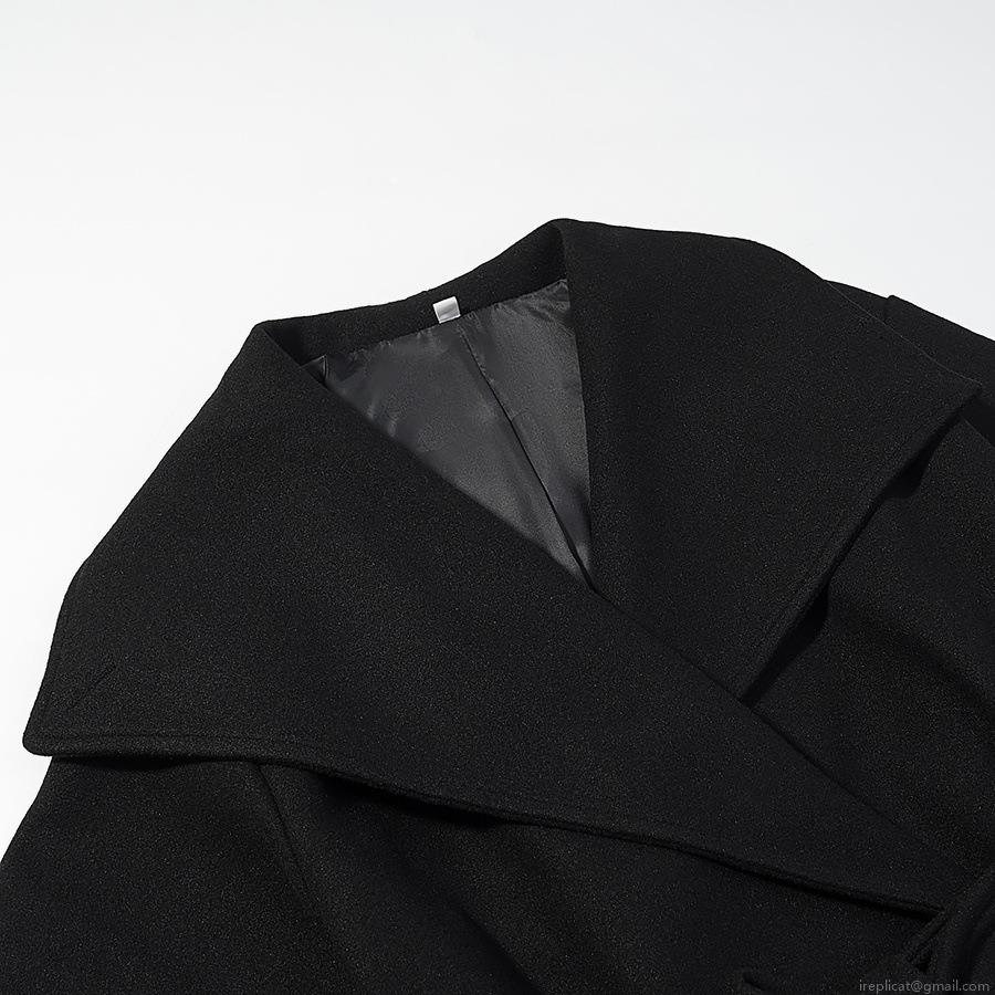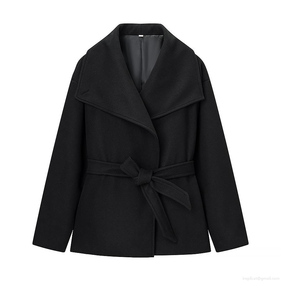 • Women's European Style Solid Color Woolen Coat With Lapel Long Sleeve Waist Tie Mid-Length Polyester Blend Jacket For Autumn Winter