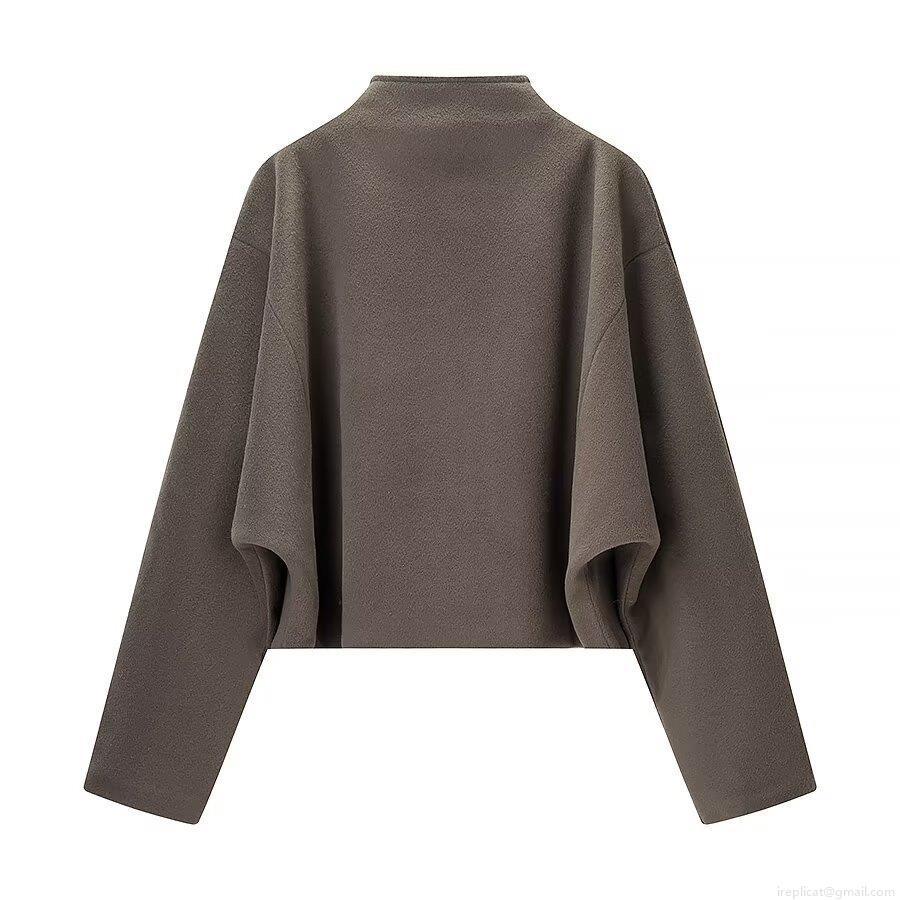 Women's European Style Stand Collar Long Sleeve Zipper Polyester Fleece Jacket Casual Loose Solid Color Fall Winter Outerwear Streetwear For Women