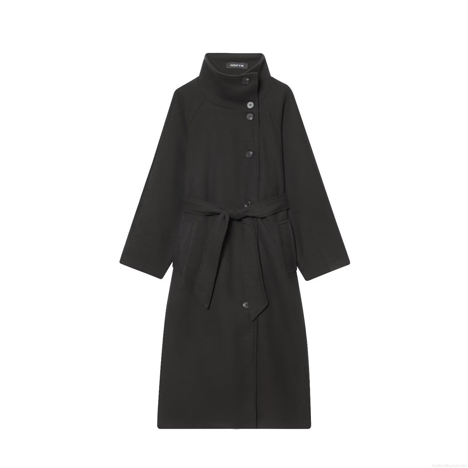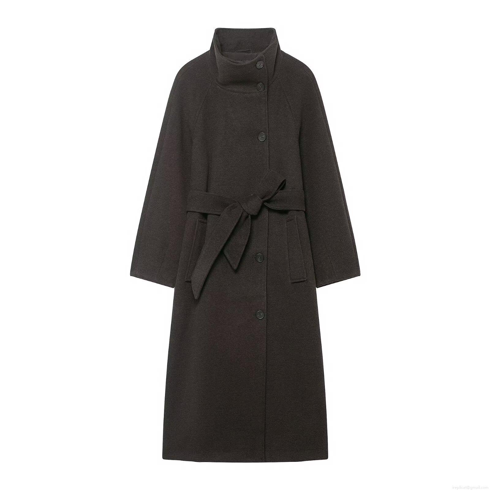 • Women's European Style Stand Collar Long Wool Like Coat With Belt Single Breasted Warm Polyester Blend Outerwear Streetwear Trench Overcoat For Women Autumn Winter