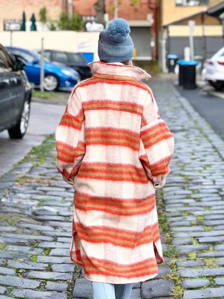 • Women's Extra Long Plaid Woolen Coat Lapel Single Breasted Loose Winter Warm Overcoat Streetwear Polyester Jacket For Women