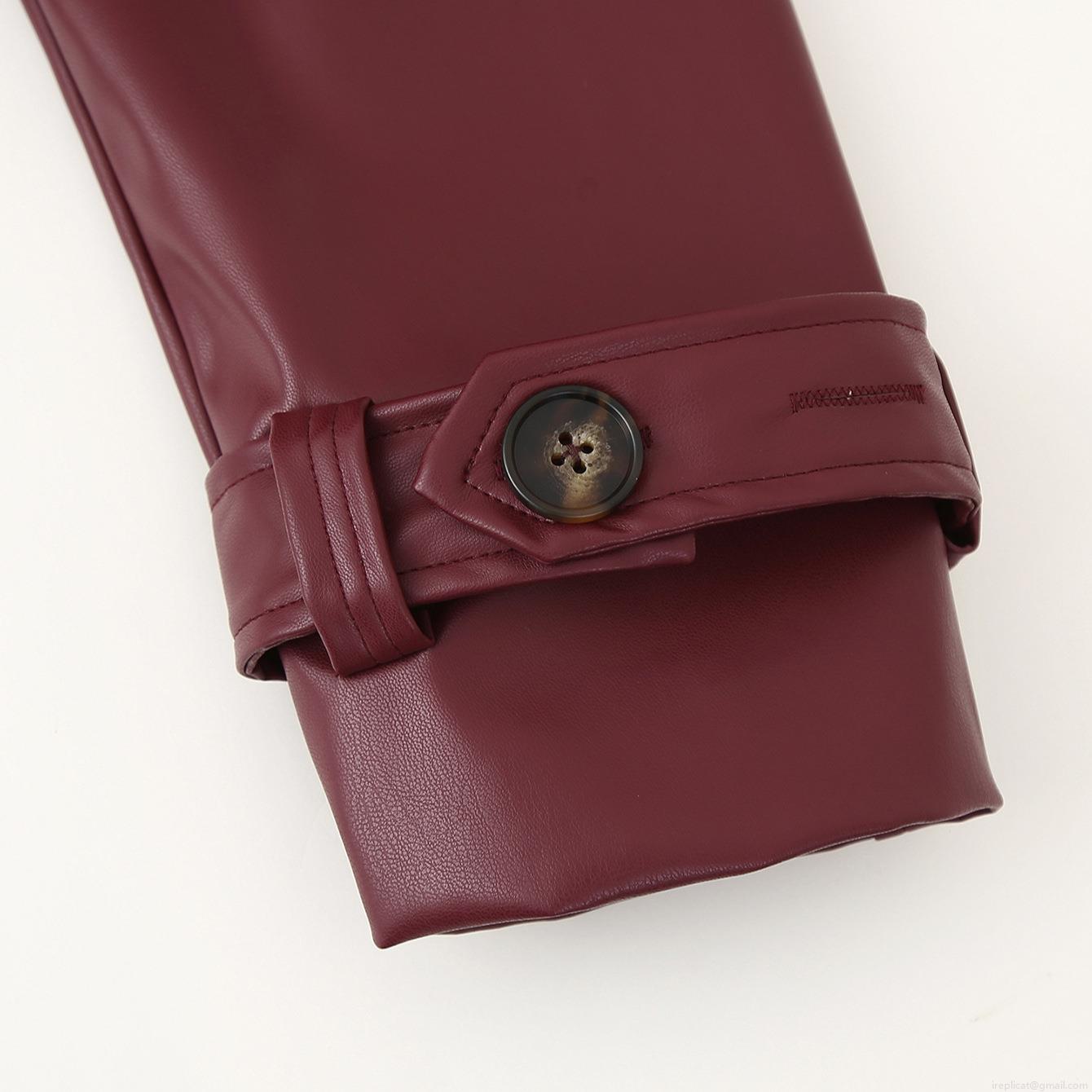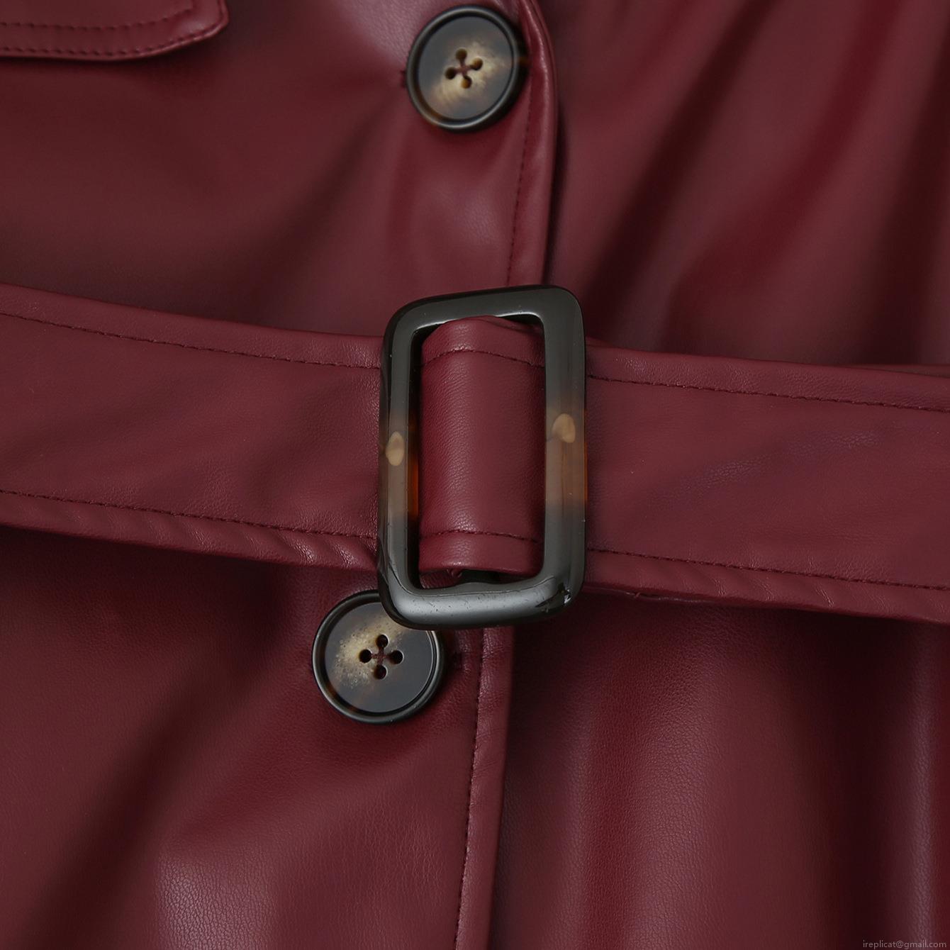 • Women's Extra Long PU Leather Trench Coat Windproof Lapel Motorcycle Style Jacket With Belt Double Breasted Wine Red Faux Leather Overcoat for Autumn Winter