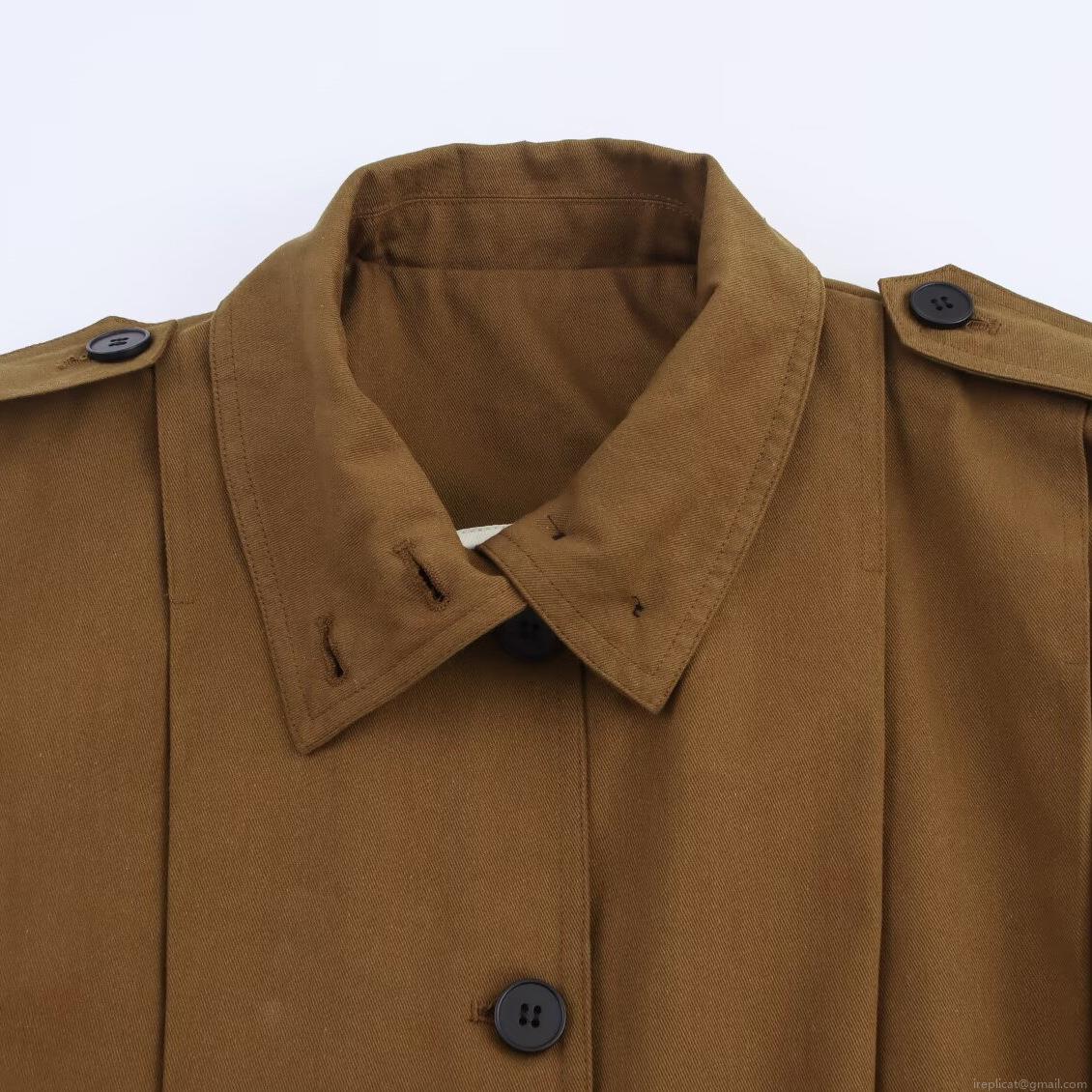 • Women's Fashion Camel Cropped Jacket Pleated Design With Shoulder Straps Lapel Collar Long Sleeve Casual Polyester Outerwear Coat For Women Daily Wear