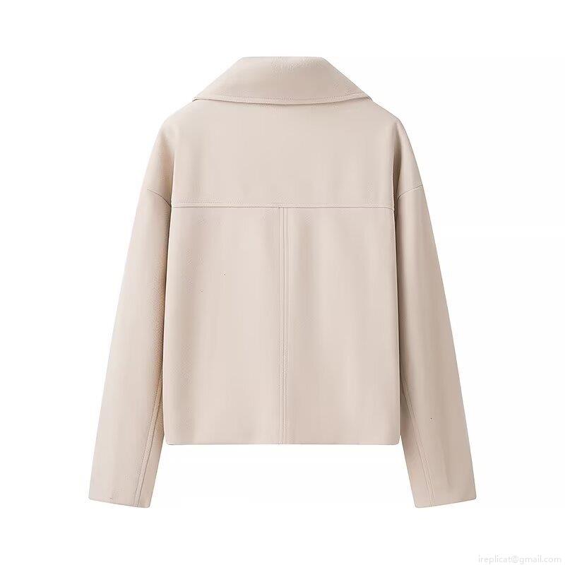 • Women's Fashion Casual Double Breasted Short Woolen Coat Solid Color Lapel Long Sleeve Loose Fit Jacket With Pockets For Autumn Daily Wear Outwear