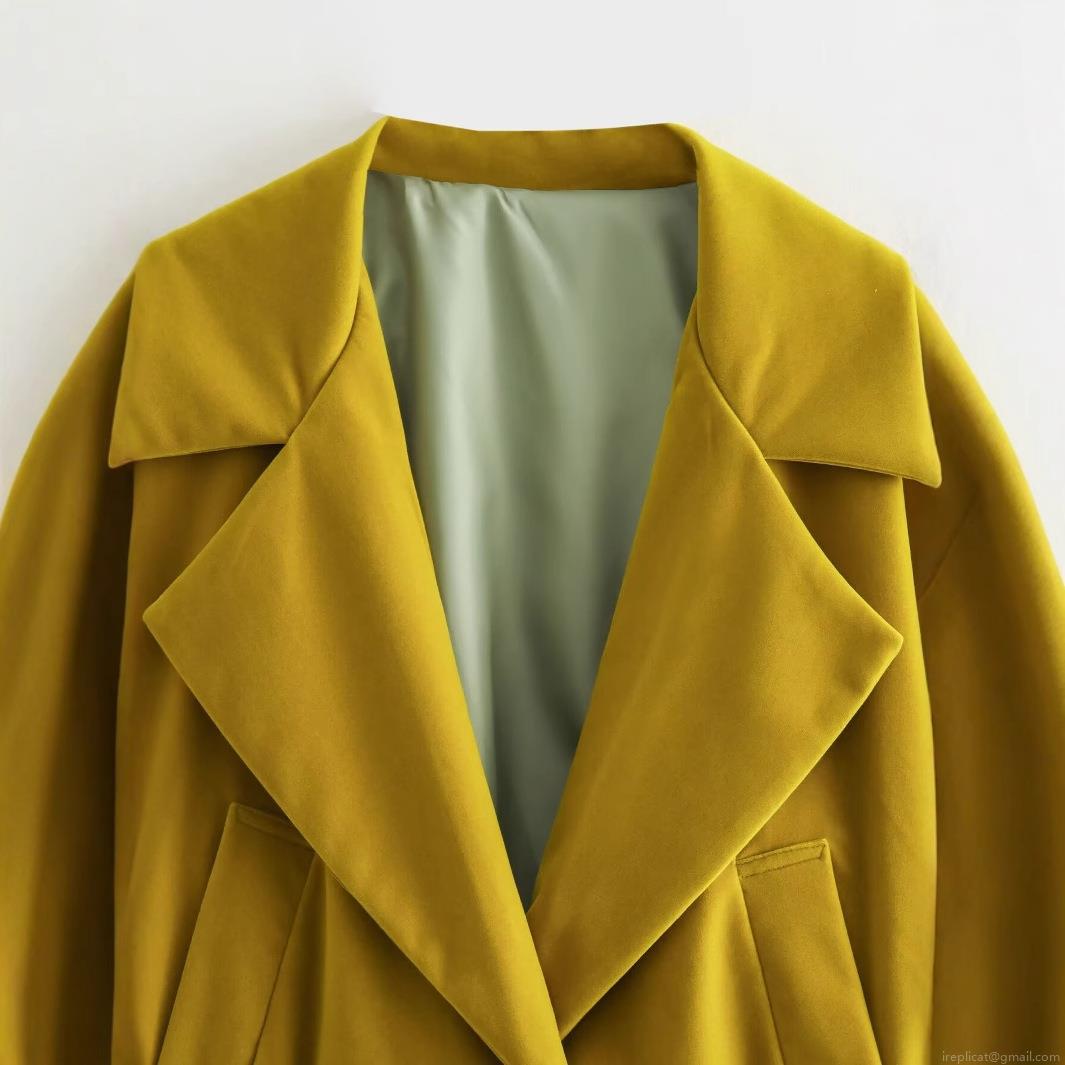 • Women's Fashion Casual Ginger Yellow Short Jacket Coat Large Lapel Open Front Polyester Fabric Loose Fitting Long Sleeve Outerwear For Spring Autumn Women Lady Daily Wear