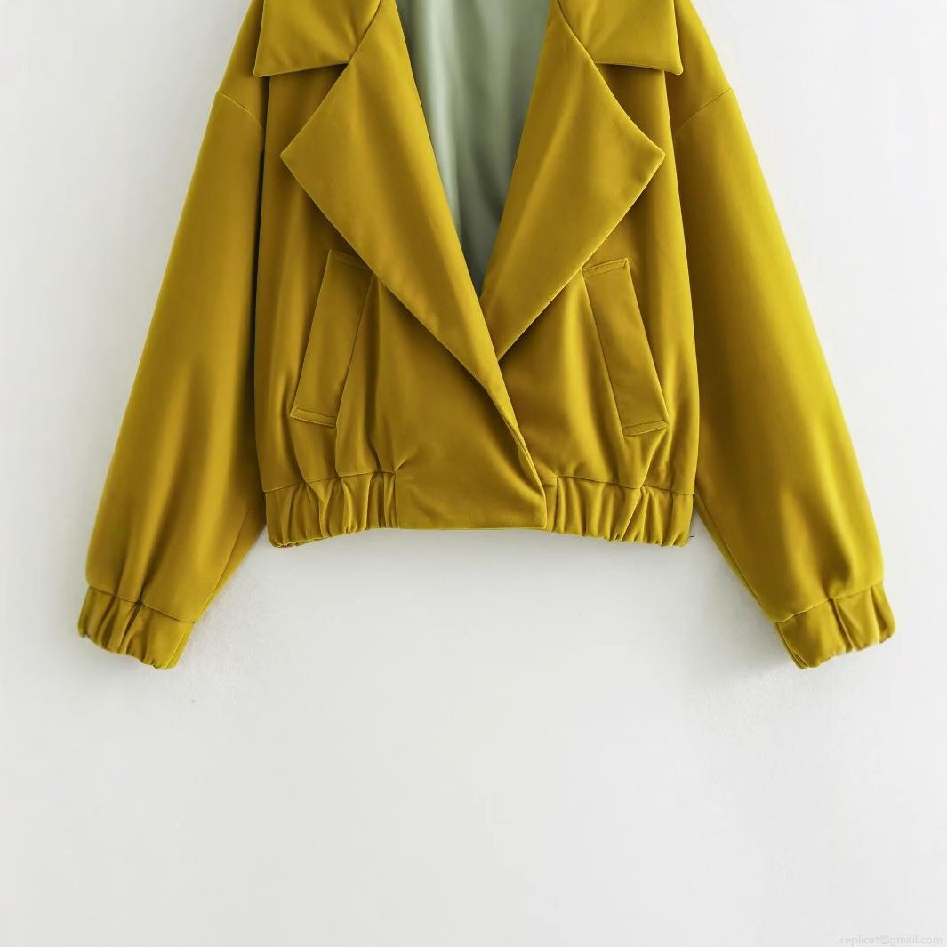 Solid Color, Slanted Pocket, Large Lapel, Elastic Hem, Cuffs