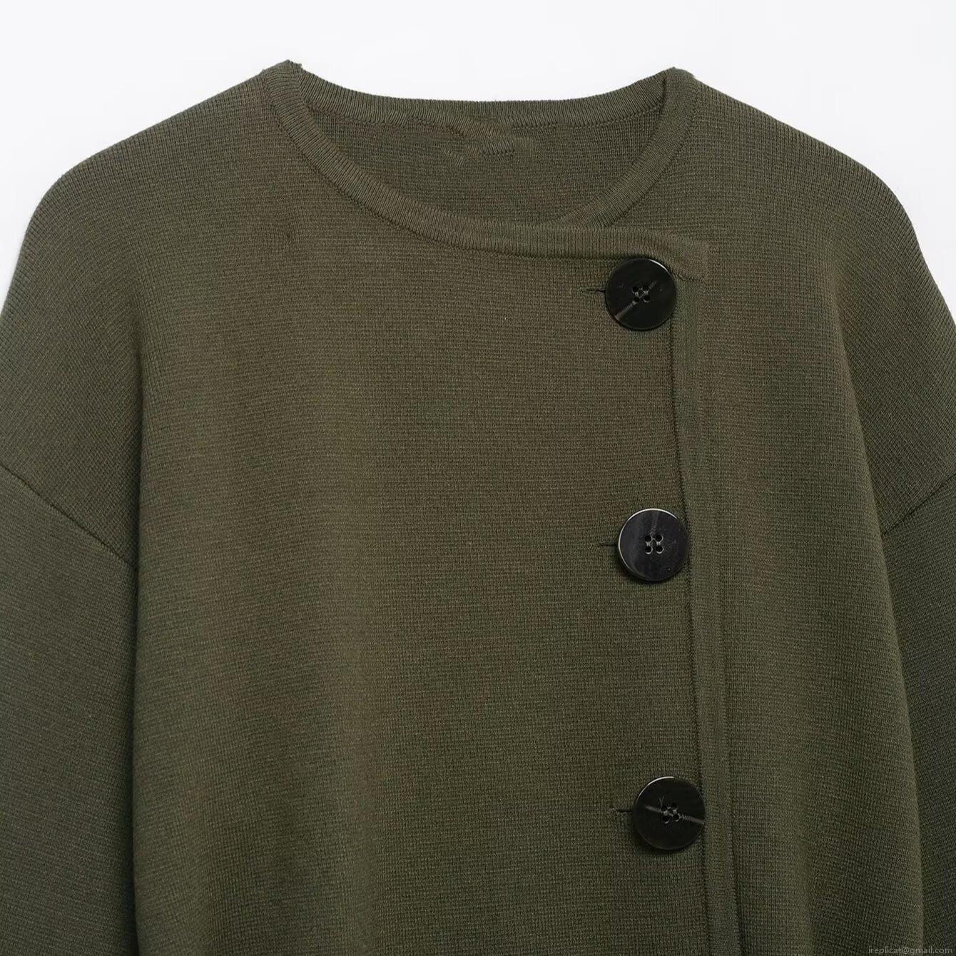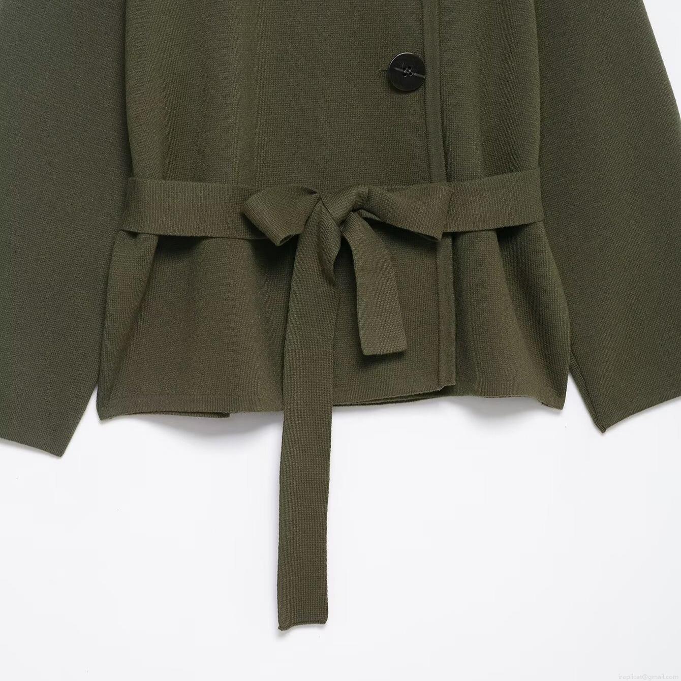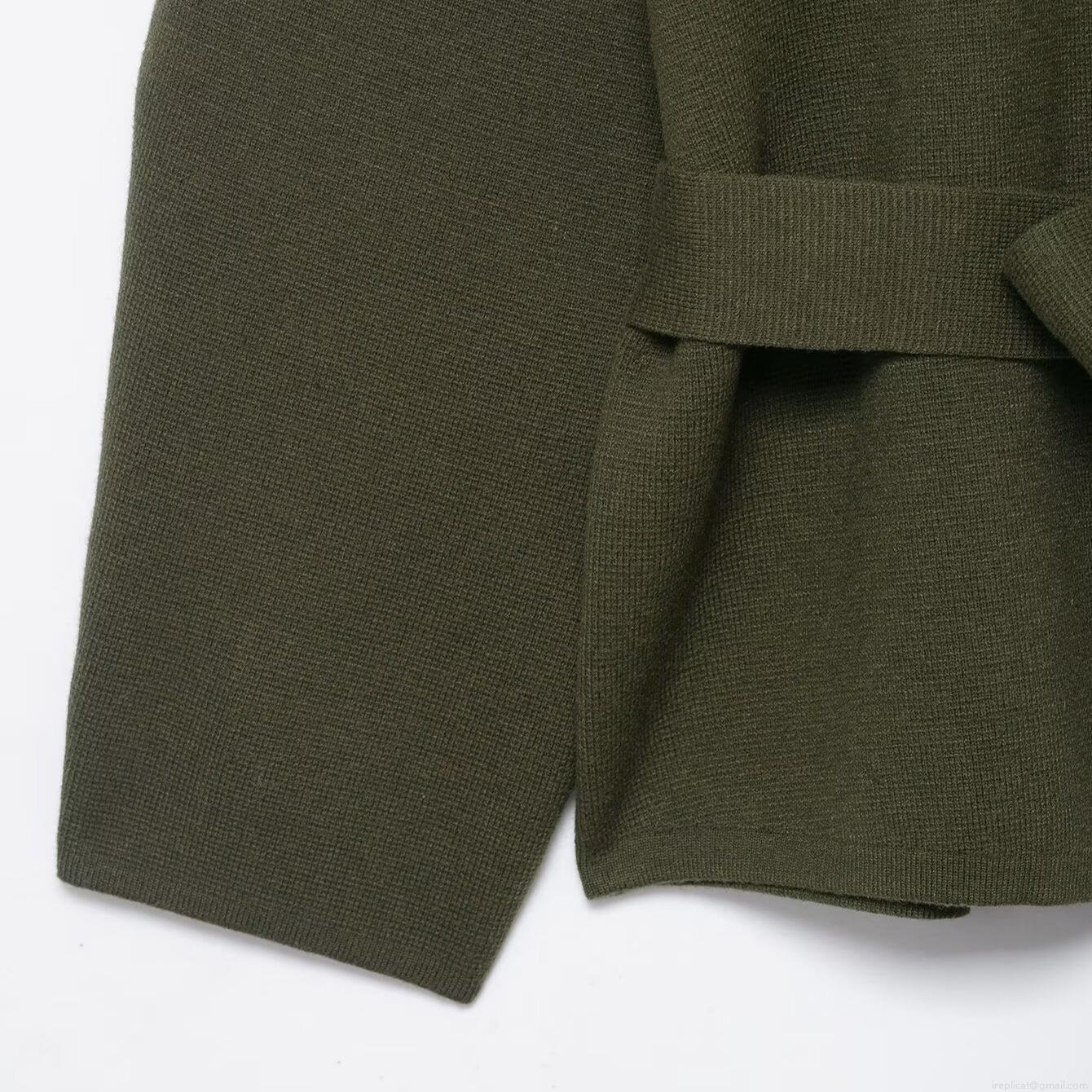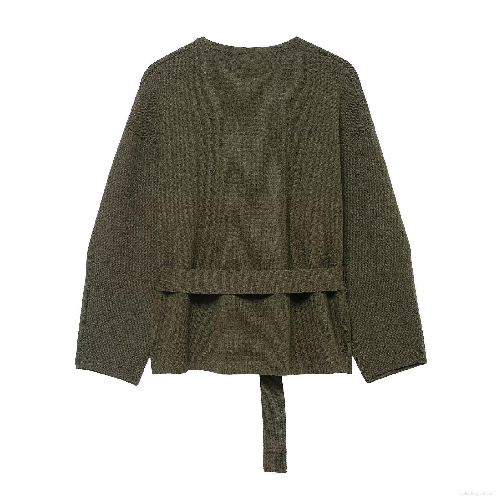 Women's Fashion Casual Knit Jacket With Belt Elegant Round Neck Solid Army Green Long Sleeve Cardigan Outerwear For Winter