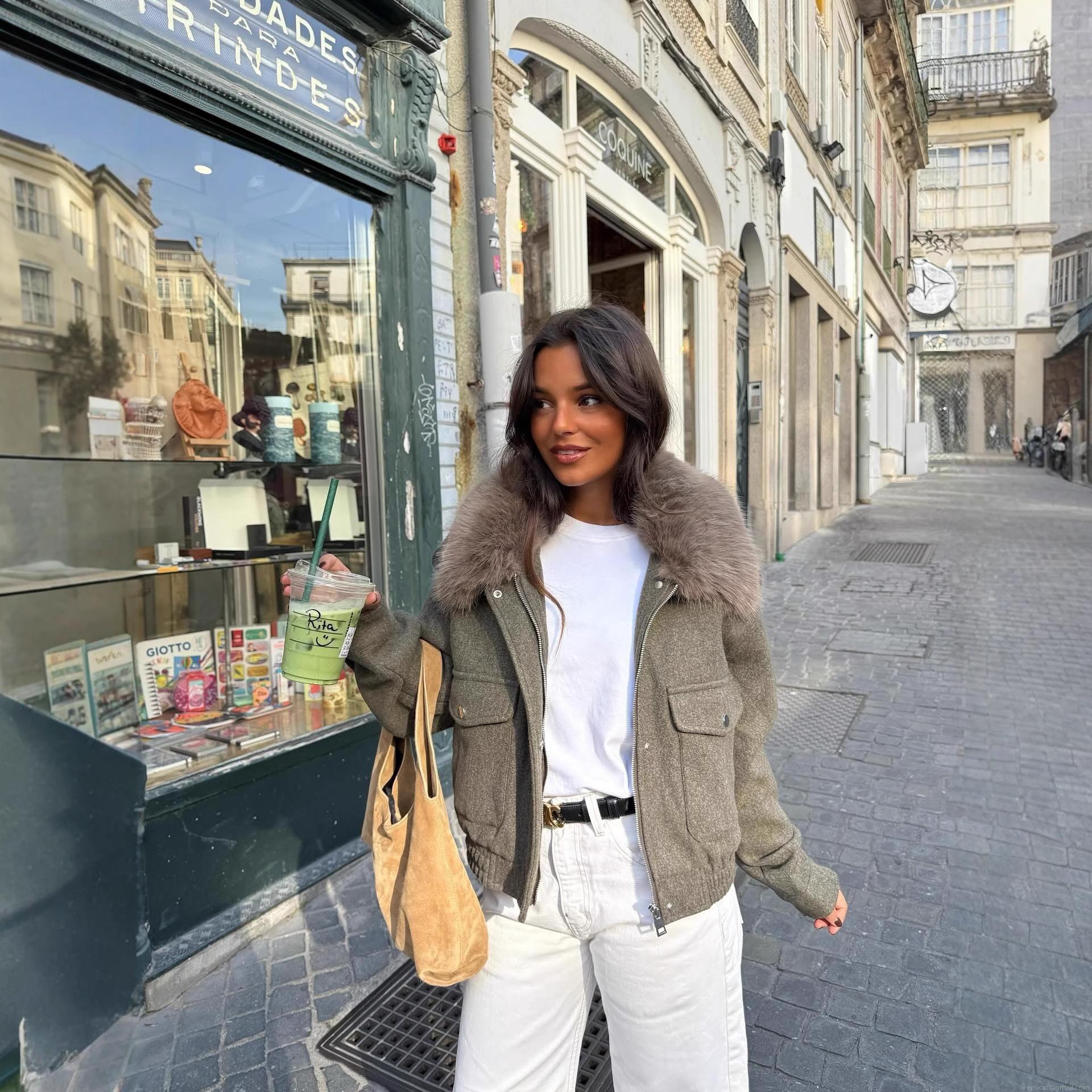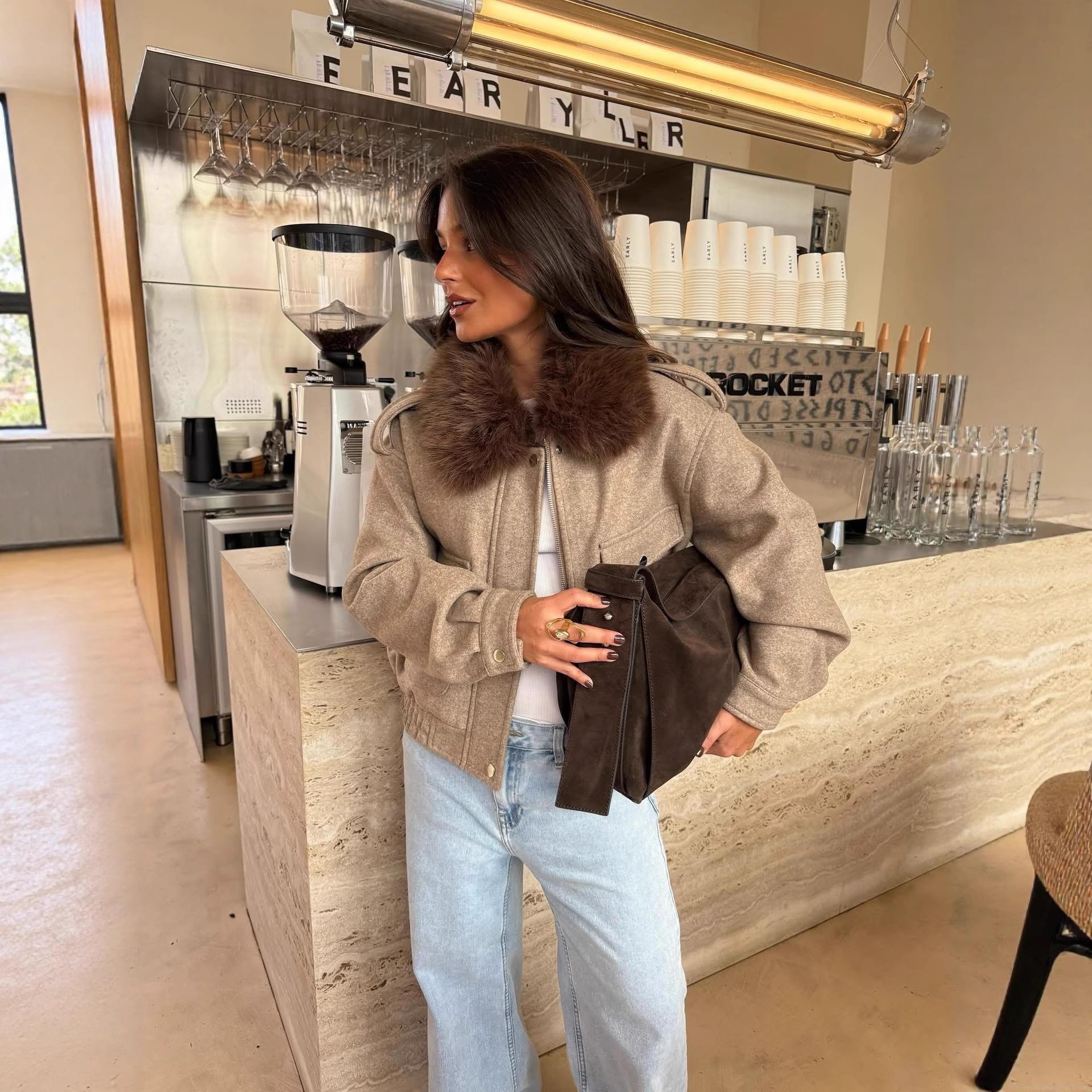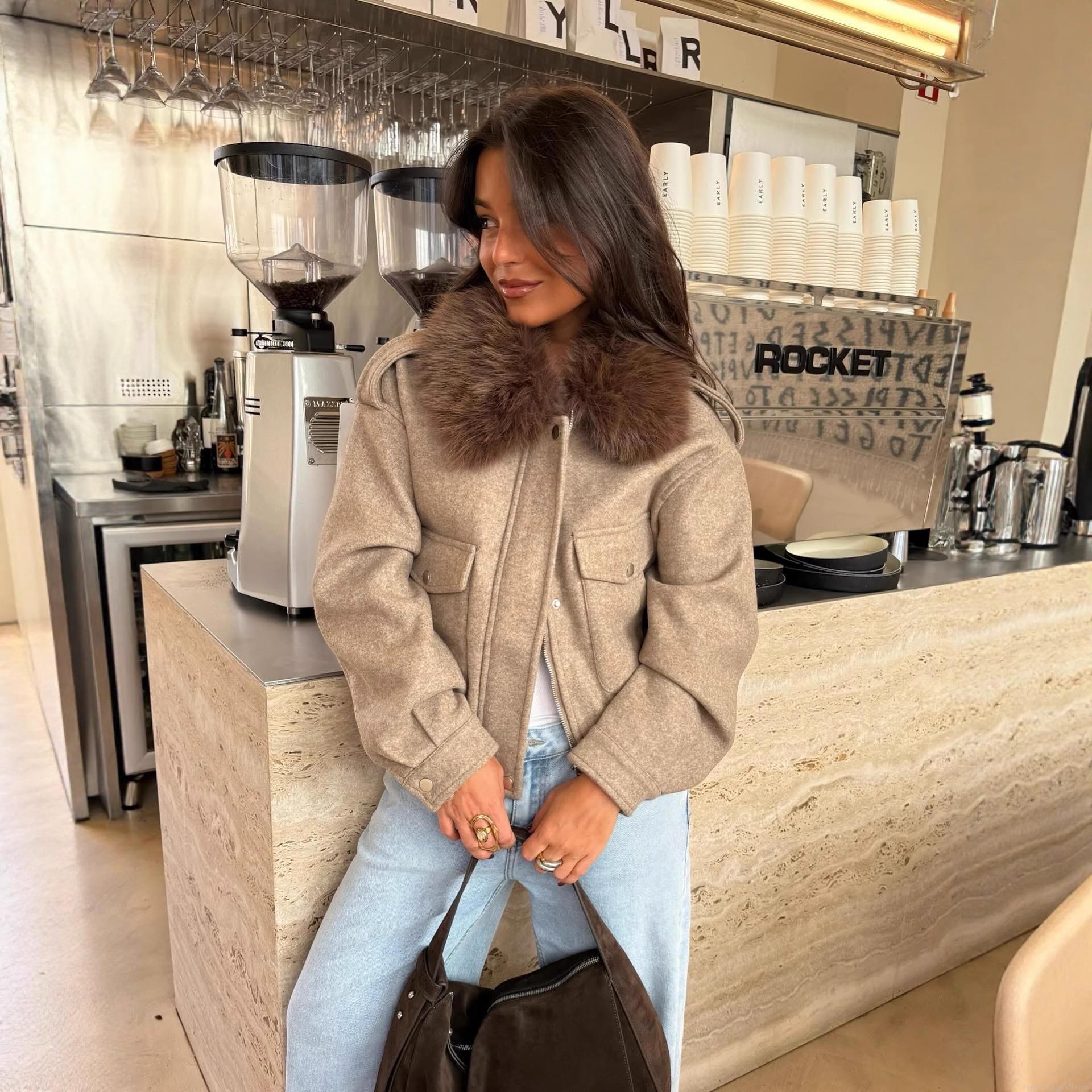 • Women's Fashion Casual Short Jacket With Faux Fur Collar Polyester Wool Blend Tweed Coat For Autumn Winter Streetwear Office Lady Outerwear