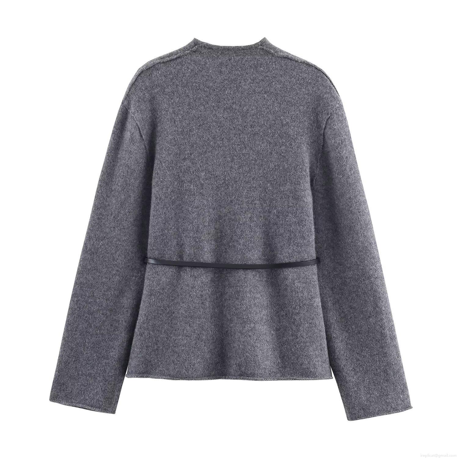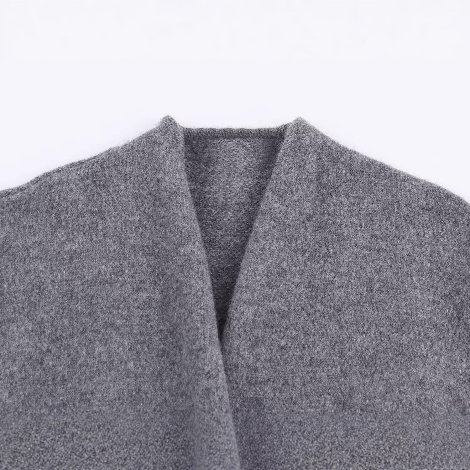 • Women's Fashion Casual Short Wool Blend Jacket With Belt V-Neck Long Sleeve Outerwear For Fall Winter Elegant Grey Cardigan Coat