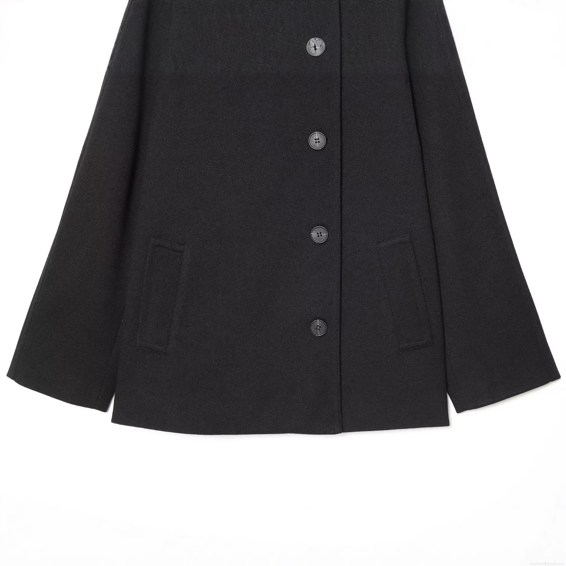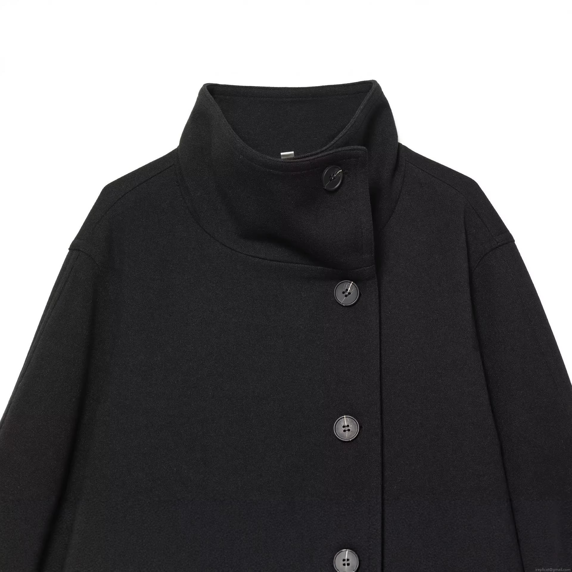 • Women's Fashion Casual Single Breasted Stand Collar Woolen Coat Autumn Winter Solid Black Long Sleeve Loose Mid-Length Outerwear Jacket