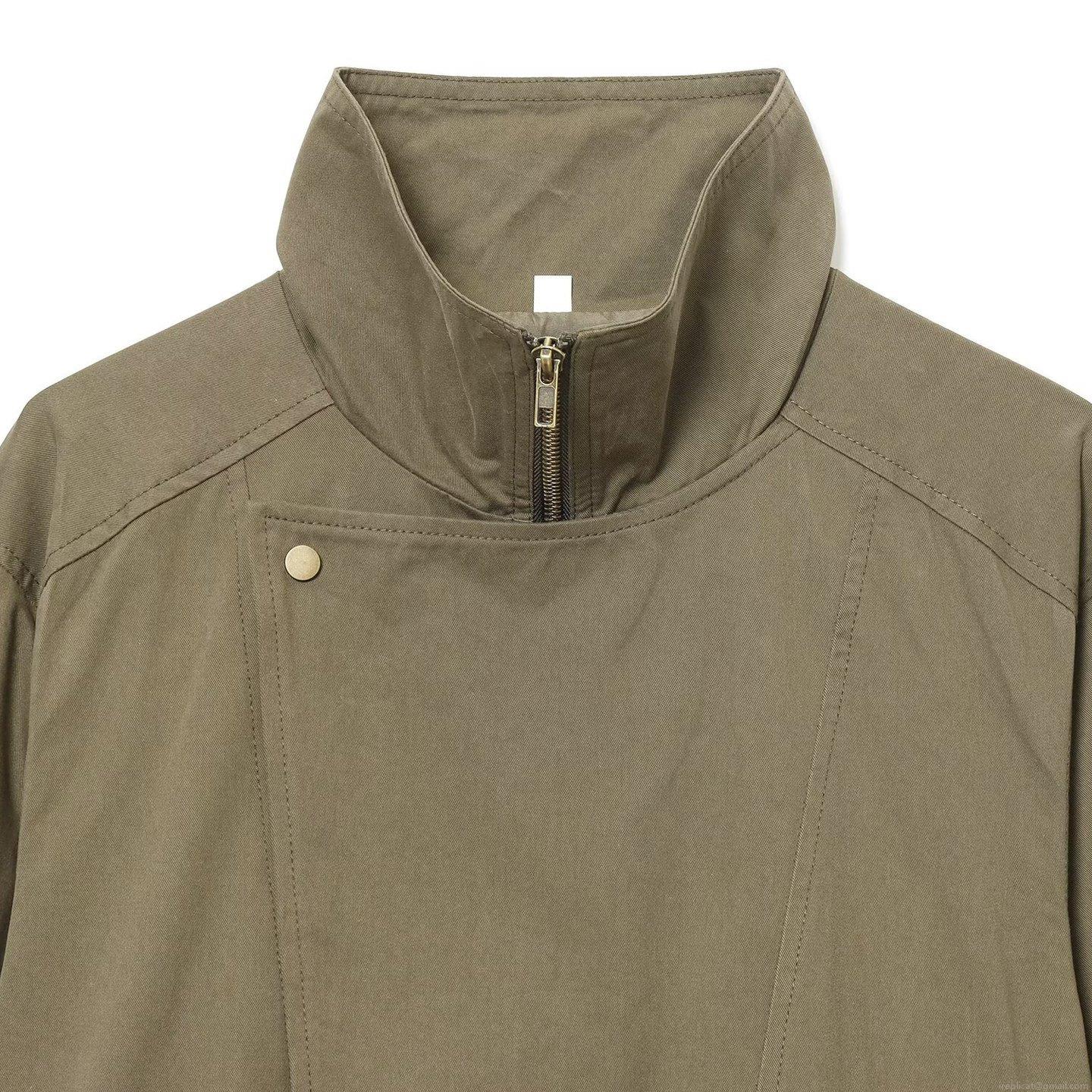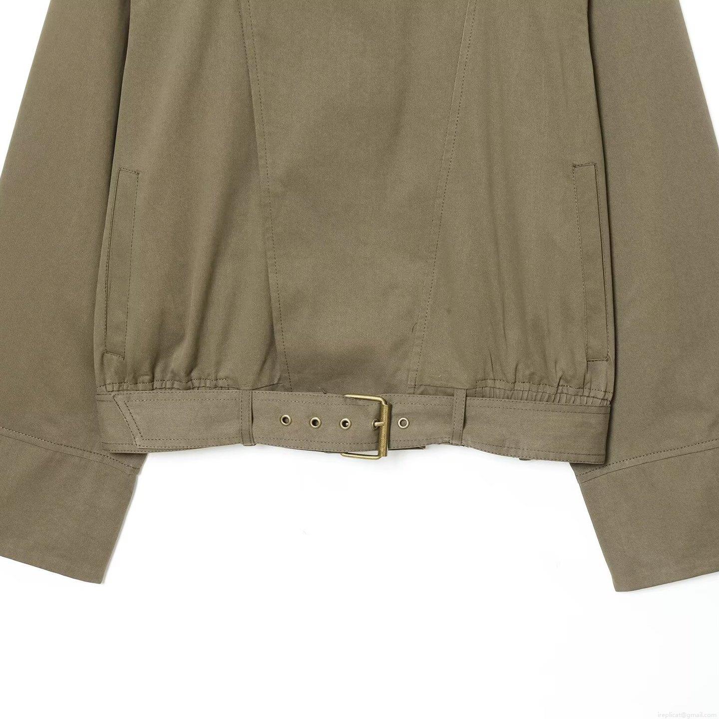 • Women's Fashion Casual Stand Collar Cotton Blend Short Jacket With Belt Long Sleeve Loose Solid Color Workwear Windbreaker Outerwear
