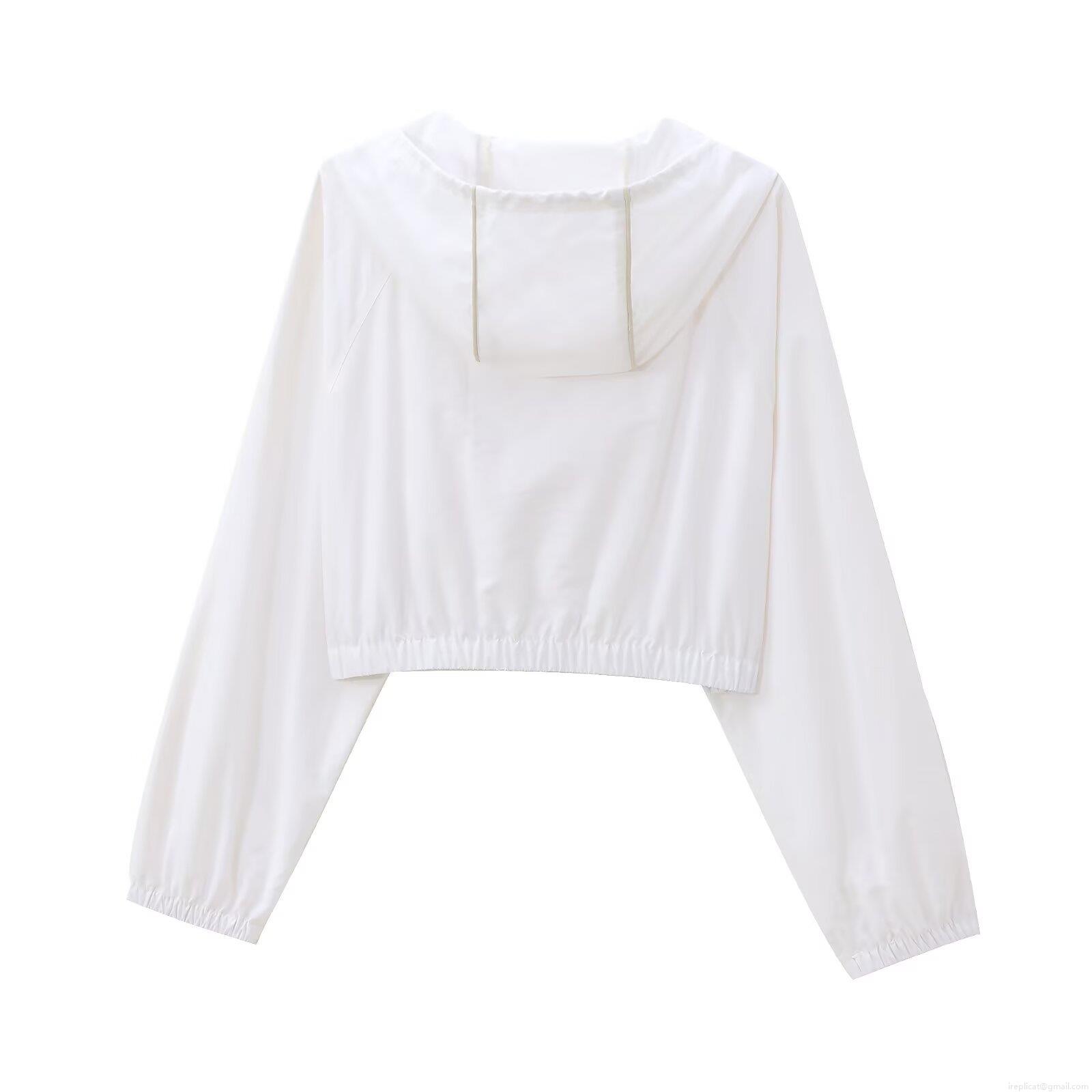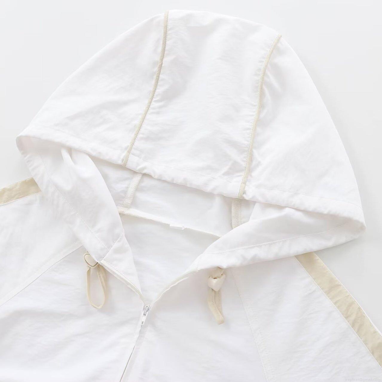 • Women's Fashion Casual Taslon Nylon Hooded Jacket Short Lightweight Contrast Striped Windbreaker Zip Up Coat For Autumn