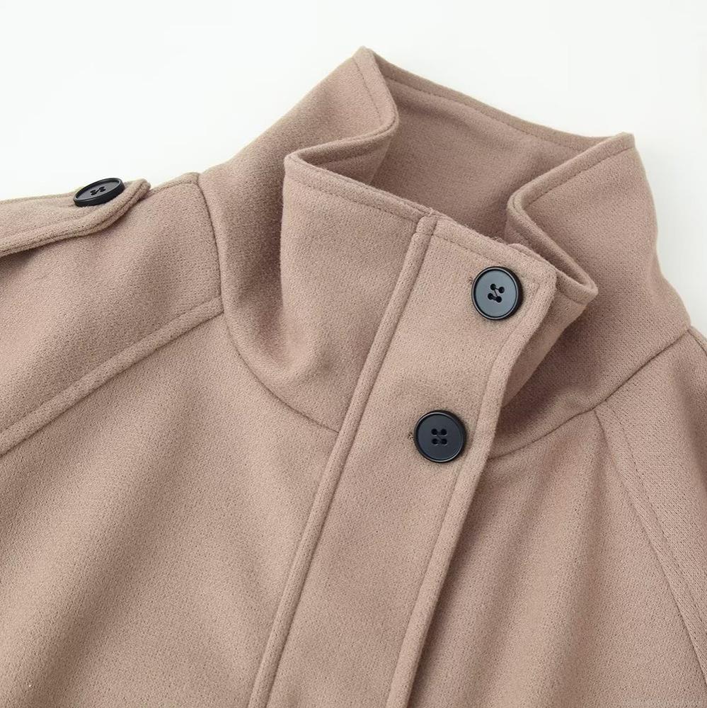 Women's Fashion Casual Wool Blend Short Jacket Coat Stand Collar Zipper Outerwear With Pockets Solid Color Khaki Black Grey Autumn Ladies Outerwear