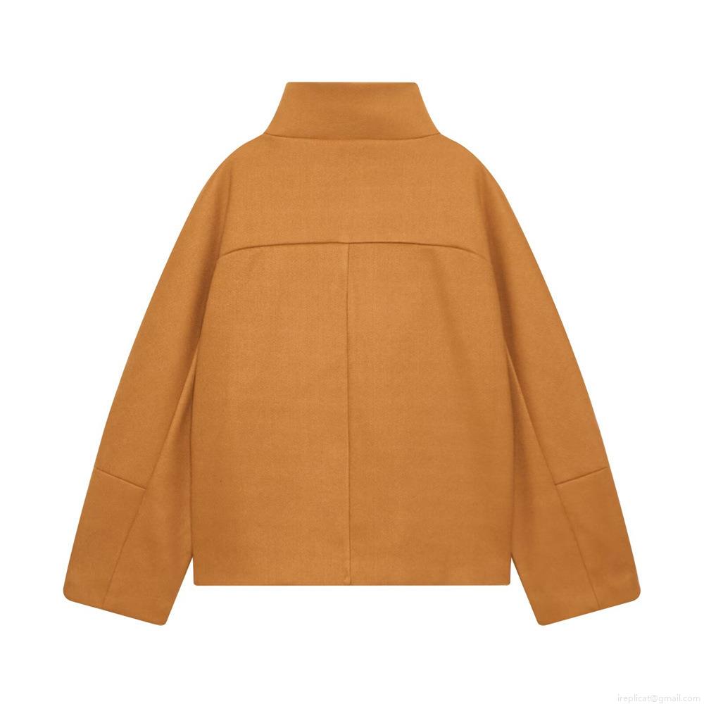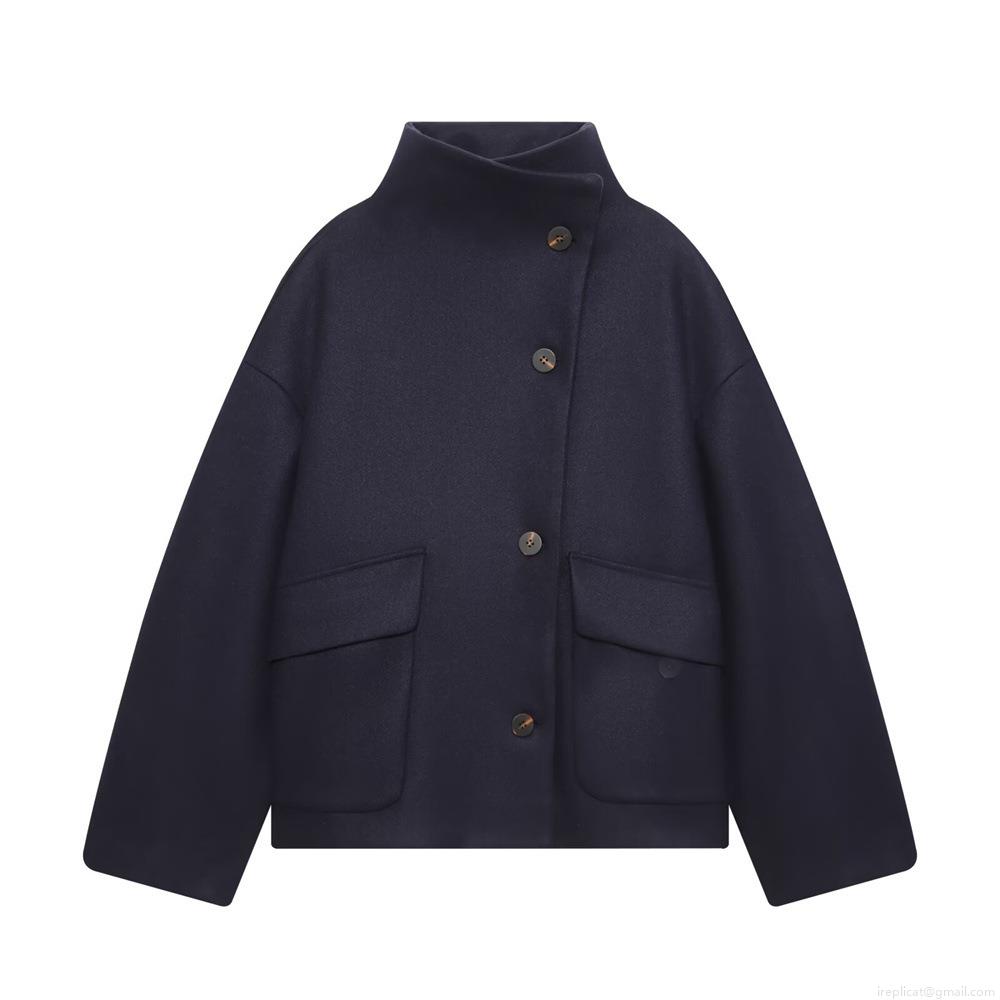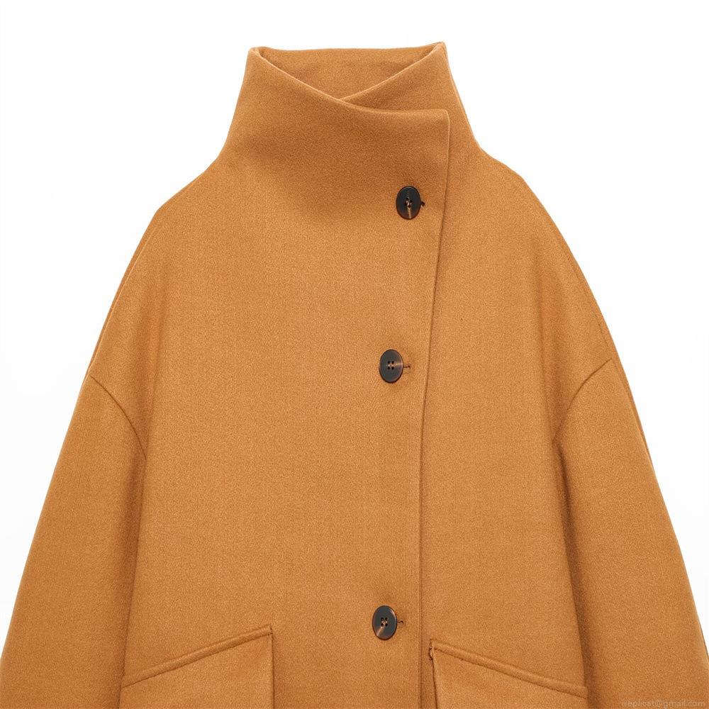 • Women's Fashion Casual Woolen Jacket Stand Collar Single Breasted Short Coat with Large Pockets Solid Color Loose Elegant Outerwear for Ladies