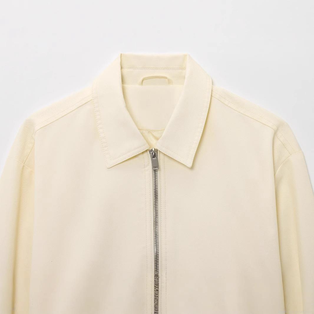 • Women's Fashion Casual Zipper Bomber Jacket Long Sleeve Turn-down Collar Solid Color Polyester Cropped Outerwear For Daily Wear