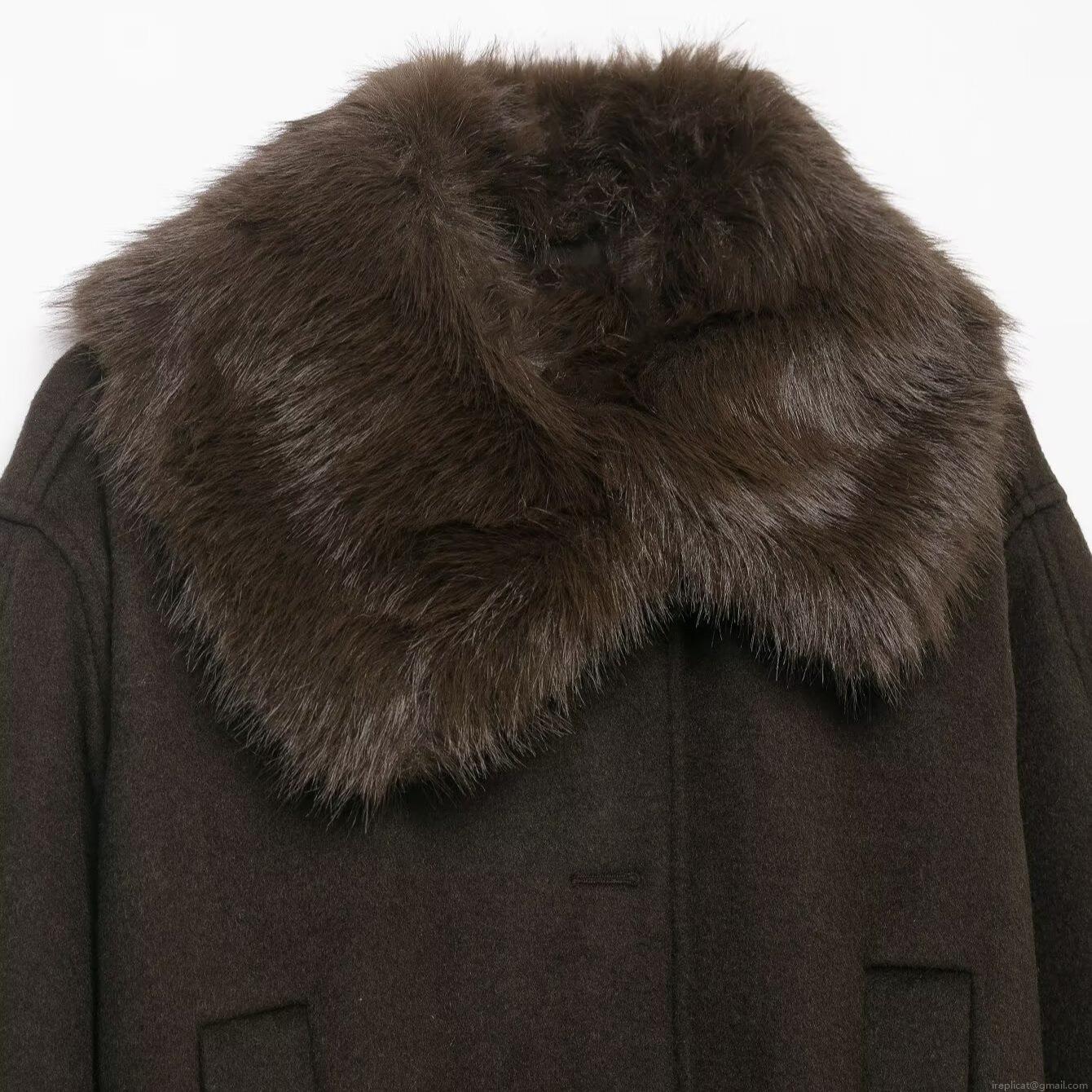 • Women's Fashion Coffee Faux Fur Collar Coat Mid-Long Loose Fit Polyester Winter Jacket With Belt Warm Casual Outerwear For Ladies