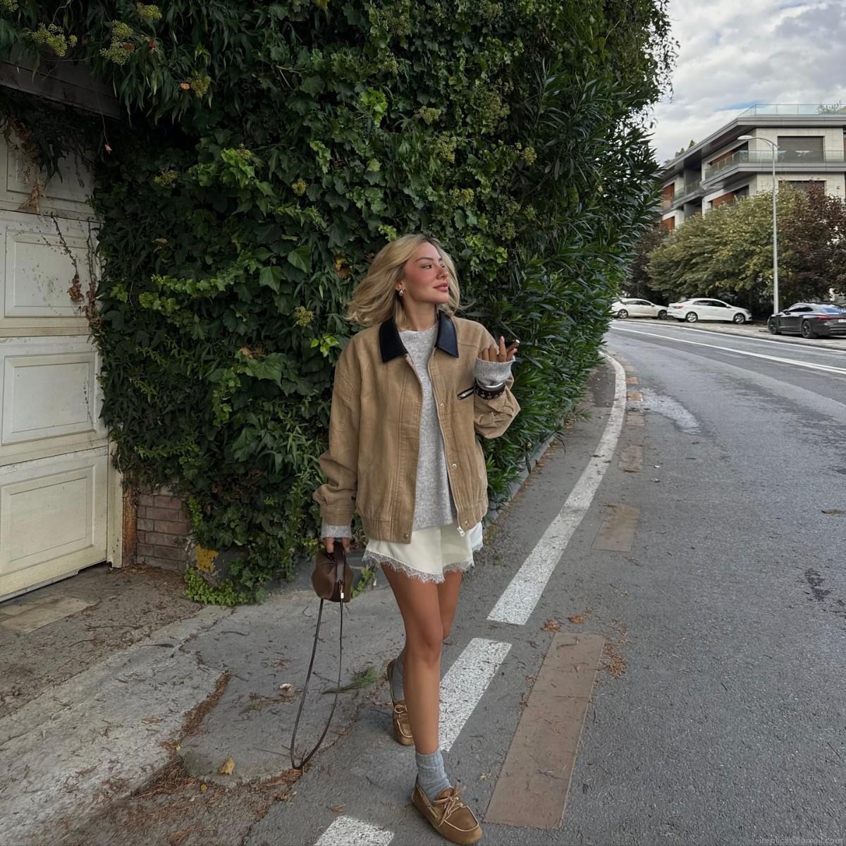 • Women's Fashion Corduroy Jacket Loose Oversized Lapel Contrast Collar Patchwork Casual Streetwear Outerwear Coat For Autumn Khaki