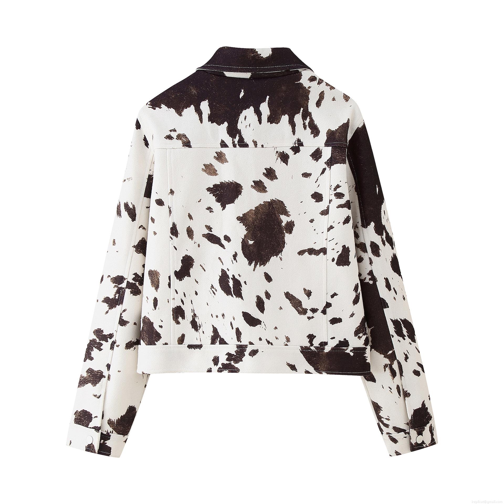 • Women's Fashion Cow Print Jacket Long Sleeve Lapel Short Coat Casual Animal Pattern Outerwear With Metal Buttons Pockets For Daily Streetwear