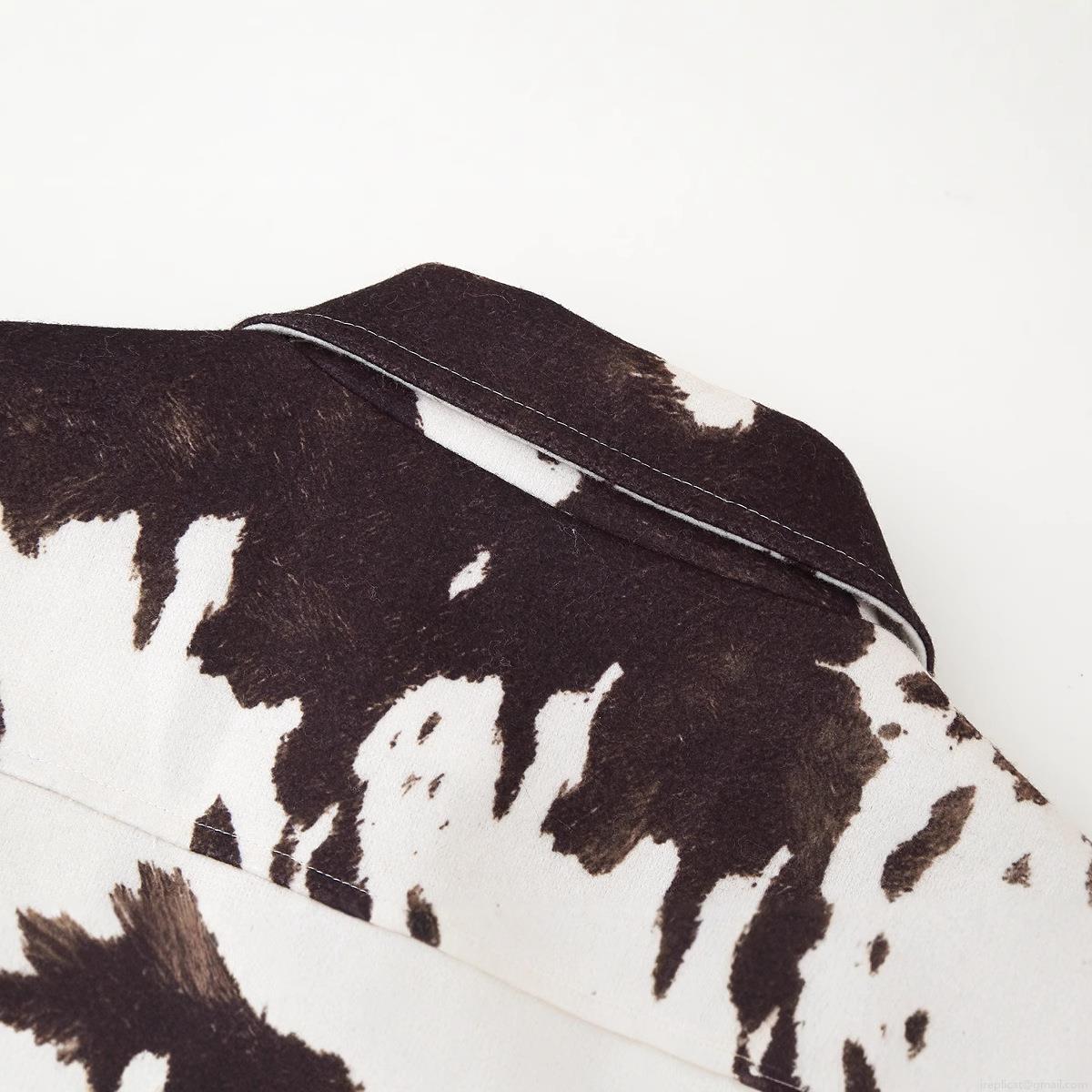 Women's Fashion Cow Print Jacket Long Sleeve Lapel Short Coat Casual Animal Pattern Outerwear With Metal Buttons Pockets For Daily Streetwear