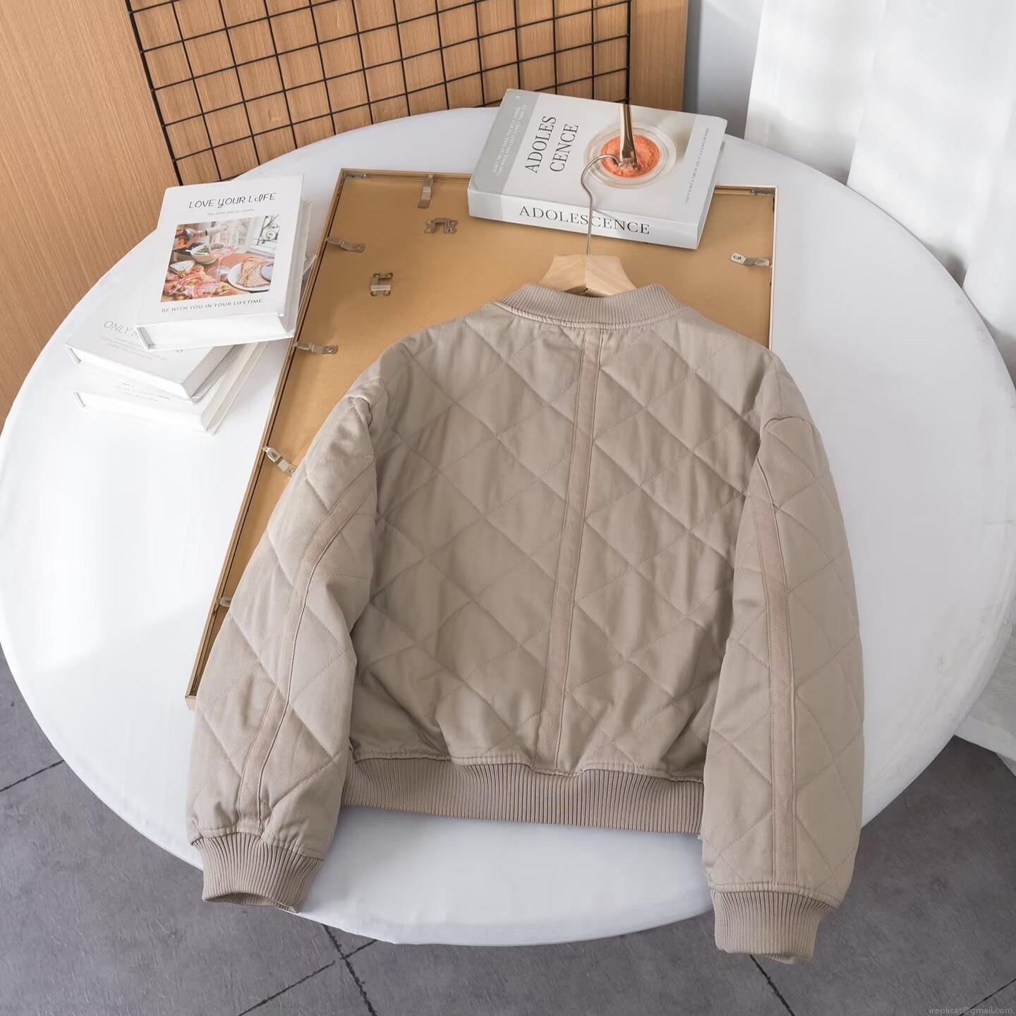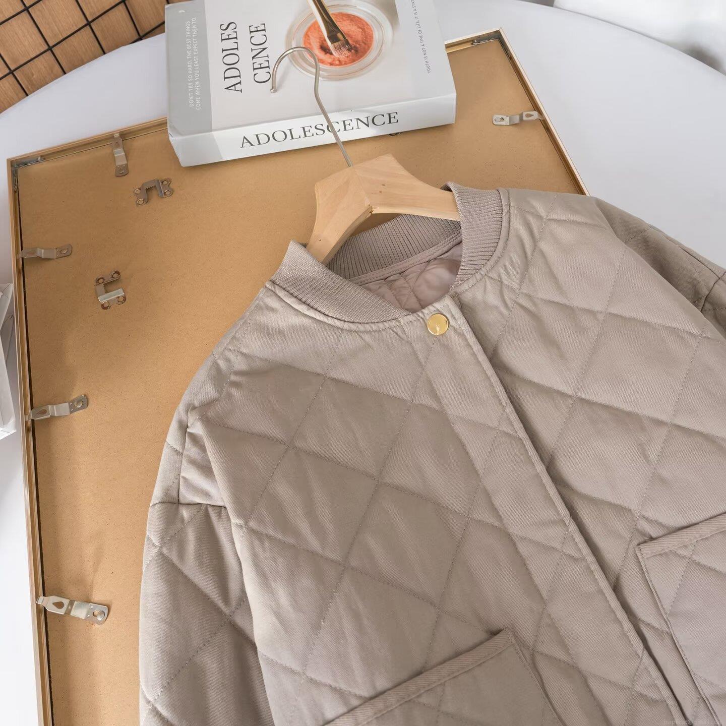 • Women's Fashion Diamond Quilted Bomber Jacket Stand Collar Padded Outerwear Loose Casual Winter Coat With Metal Buttons Polyester Fabric And Filling
