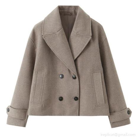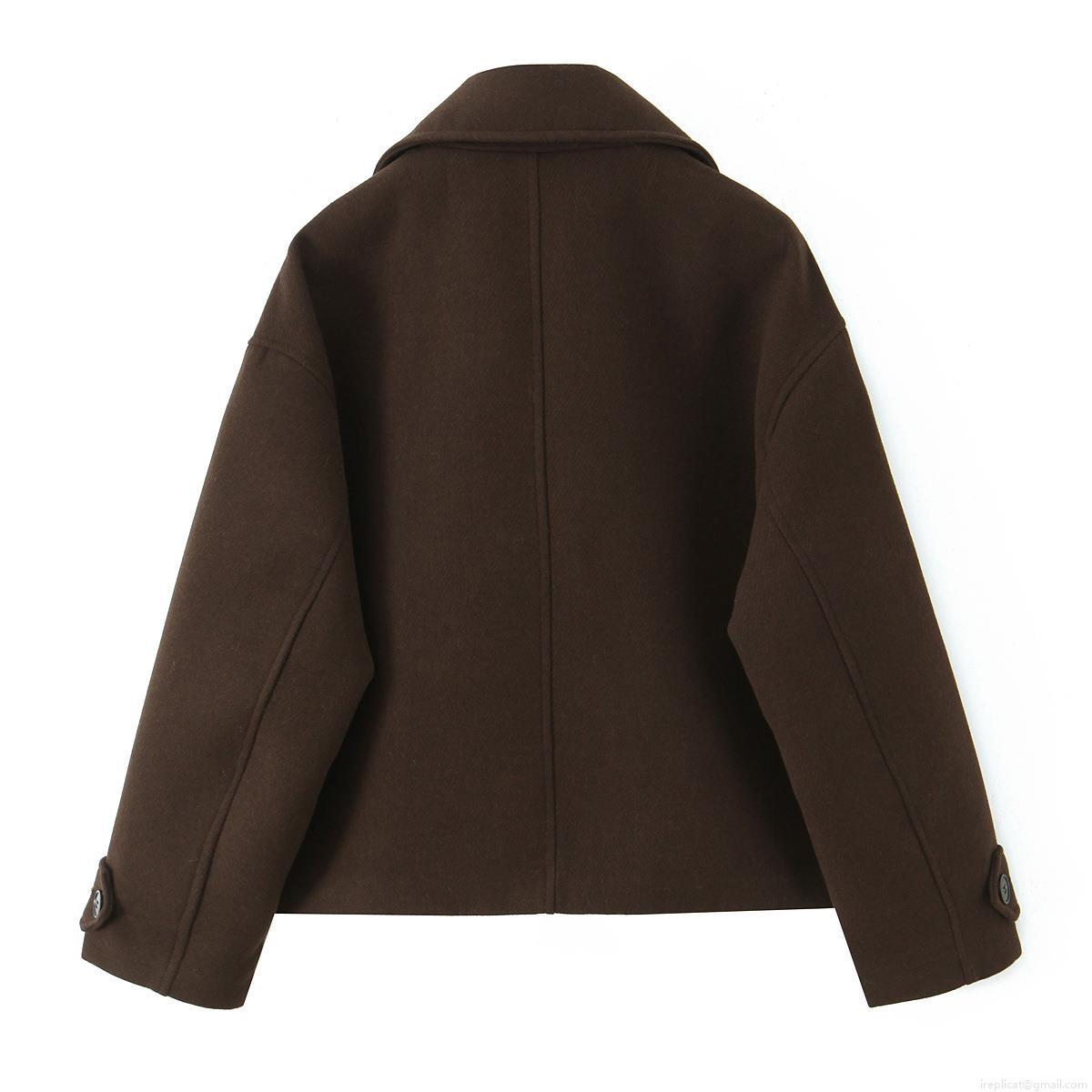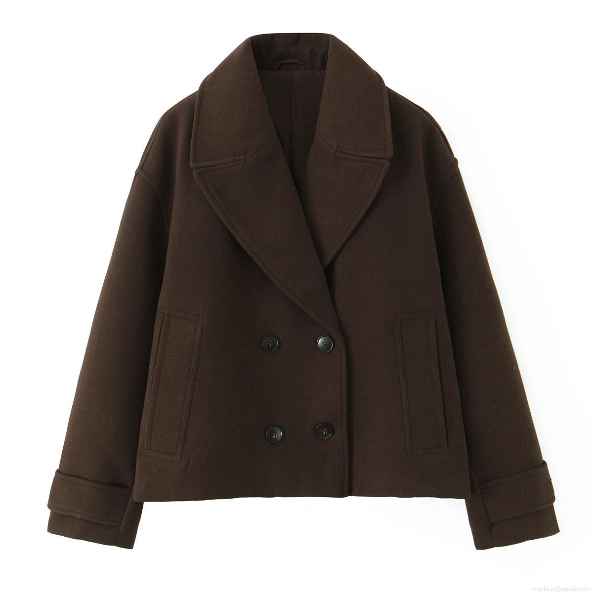 • Women's Fashion Double Breasted Short Woolen Texture Coat Elegant Lapel Plain Jacket for Autumn Winter Commuting Office Ladies Outwear