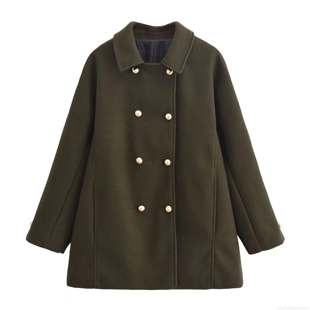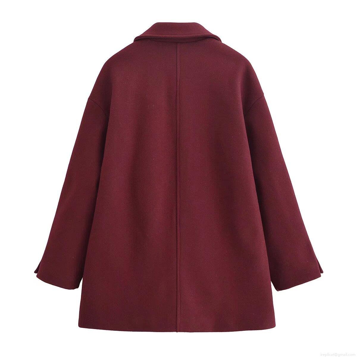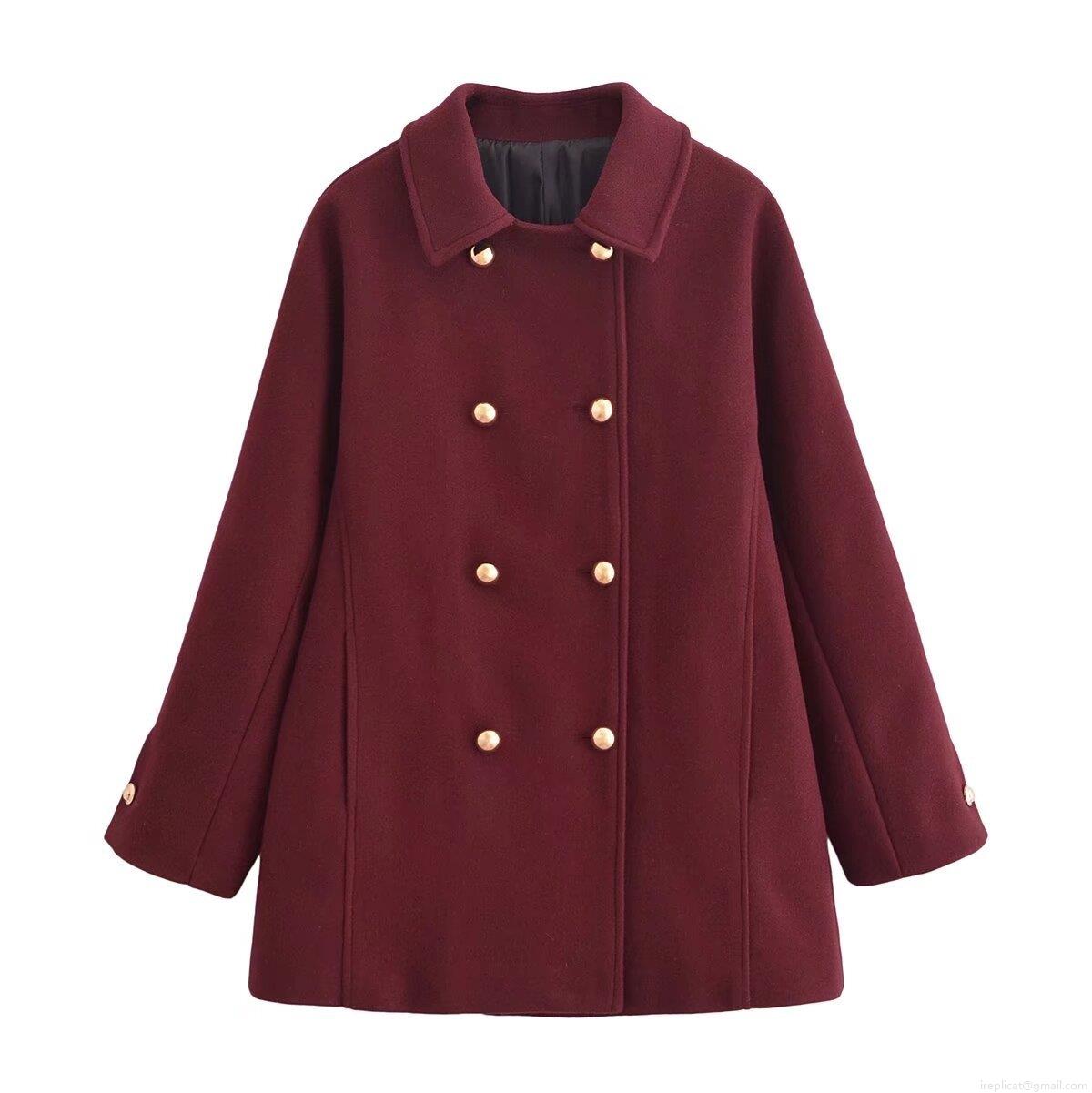 • Women's Fashion Double Breasted Woolen Coat Long Sleeve Lapel Mid-Length Jacket Solid Color Overcoat With Golden Buttons For Streetwear Autumn Winter